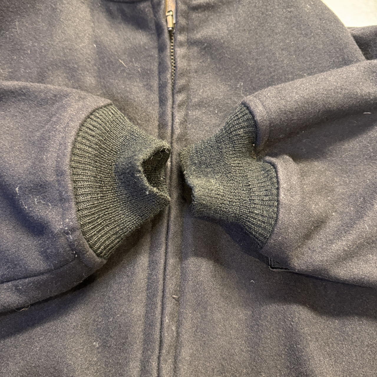 - 袖リブ一部に小穴がございます。その他、着用感がございますが問題なく着用可能な状態です。