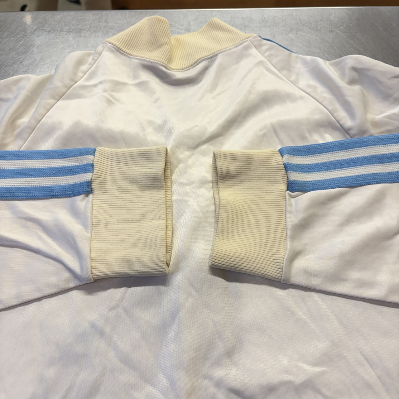 「USA製、ホワイト×サックス、サイズXL」