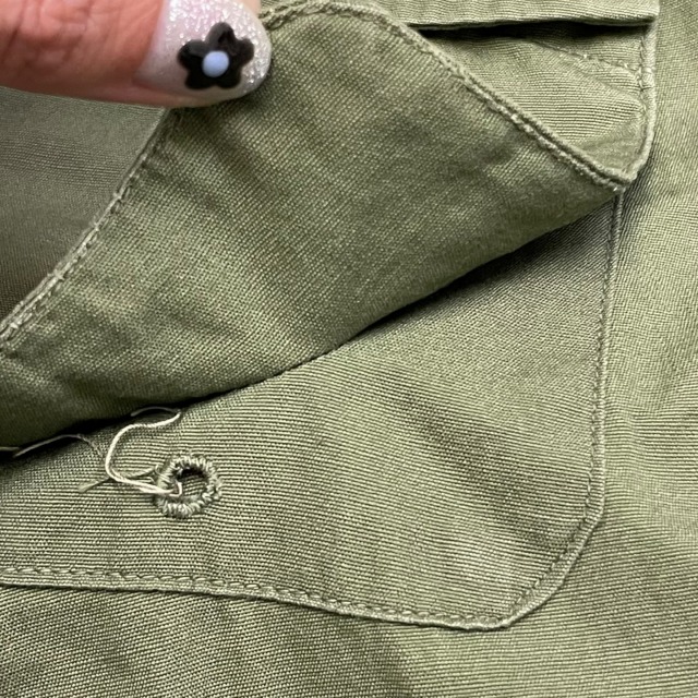 両胸、二の腕にワッペンを外したような跡がございます。