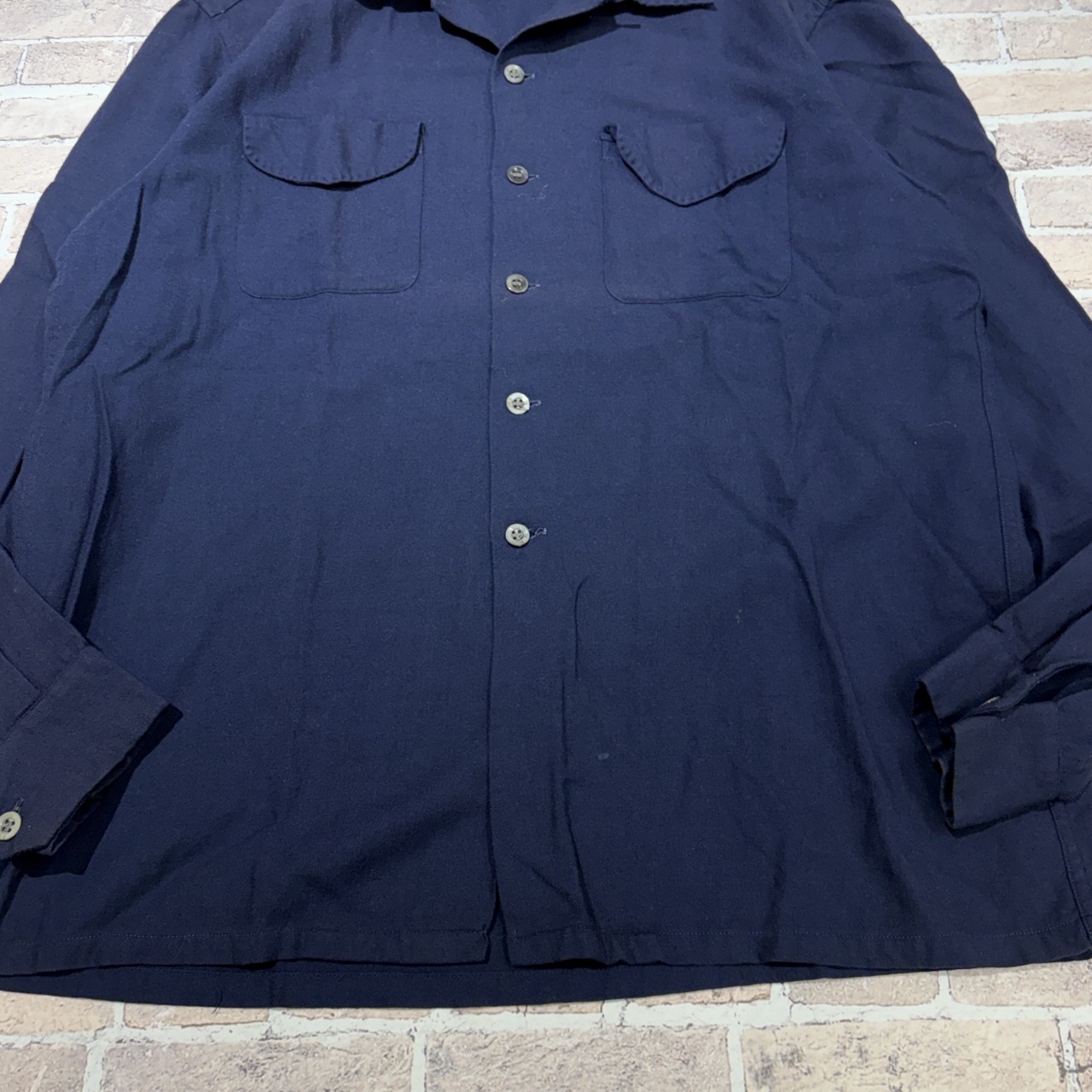 「ウール×レーヨン、ハンドステッチ、ネイビー、サイズL」