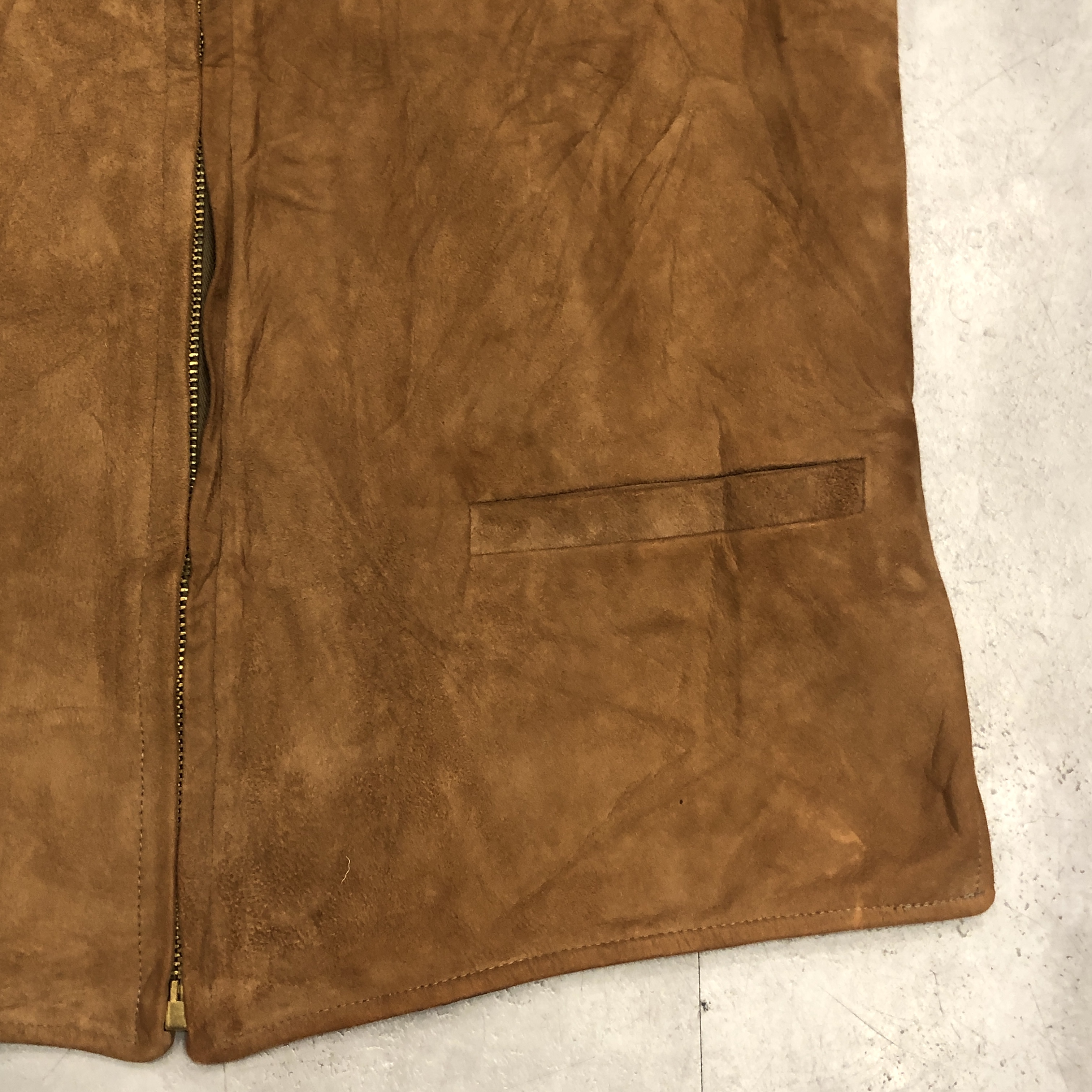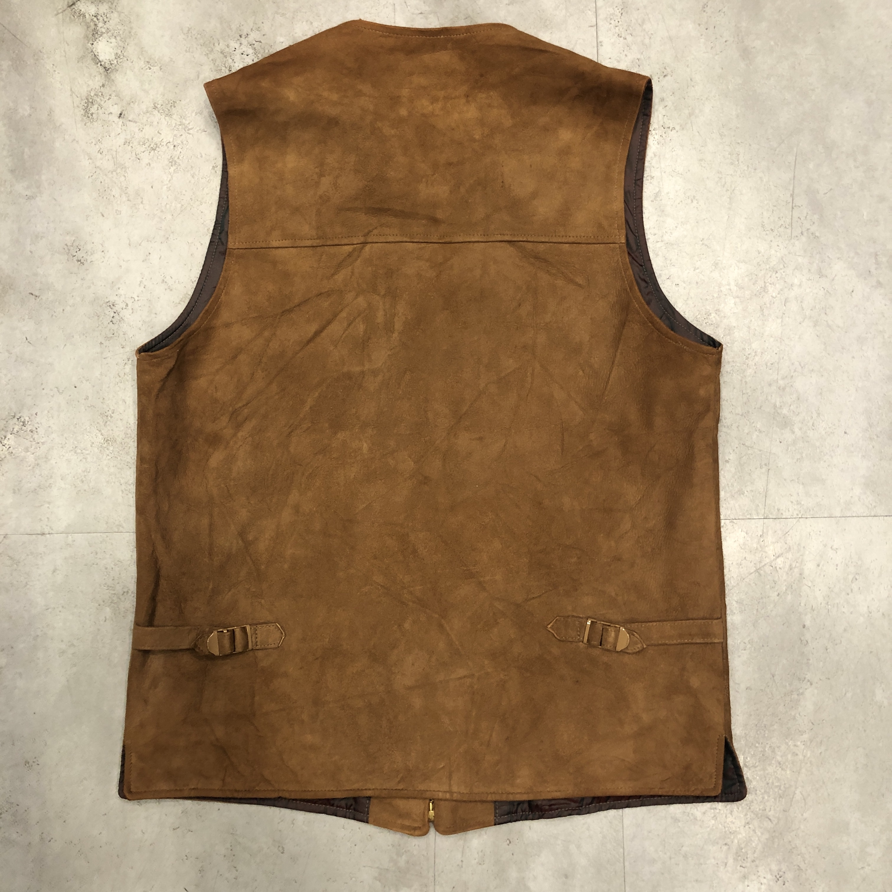 1960〜70年代製のヌバックベストが入荷しました。当時のA&Fといえば、現在のファッションブランドとは一線を画す、本格スポーツマンのための高級アウトフィッター。鹿革にも似た柔らかなヌバックレザーは着込むほどに身体に馴染み、擦れやオイルの染み込みさえも“味”として昇華していく極上の素材感です。フロントには真鍮製TALONジップ、背面にはシンチバック付きと、ディテールも実用一点張り。玉虫色に光るライニングとのコントラストもたまりません。ネルシャツの上からカウボーイ風に羽織るも良し、ウールジャケットの中に仕込んでアイビー風に決めるも良し。現行品では決して出せない渋みをまとった、大人のためのレザーベストです。