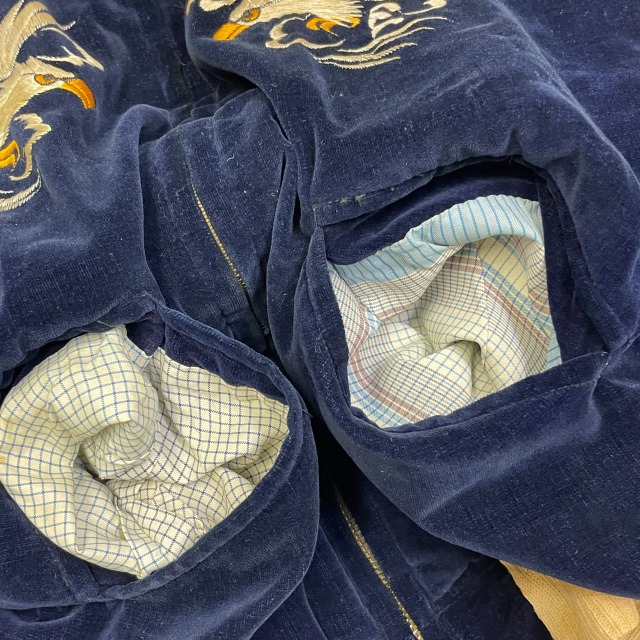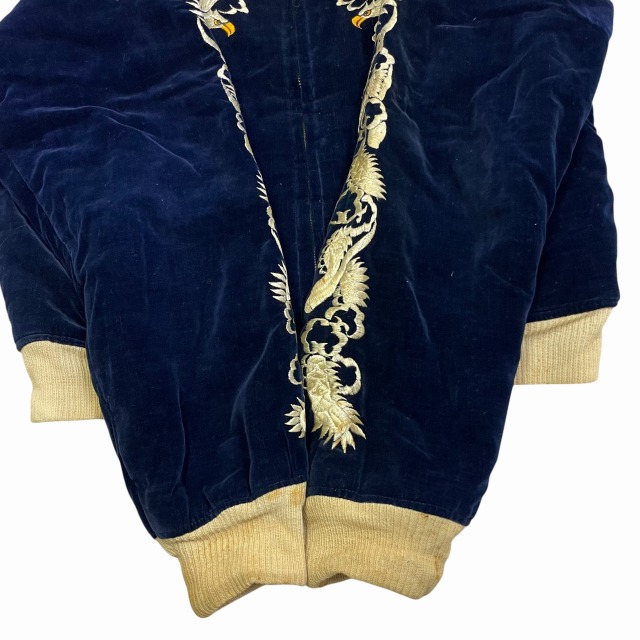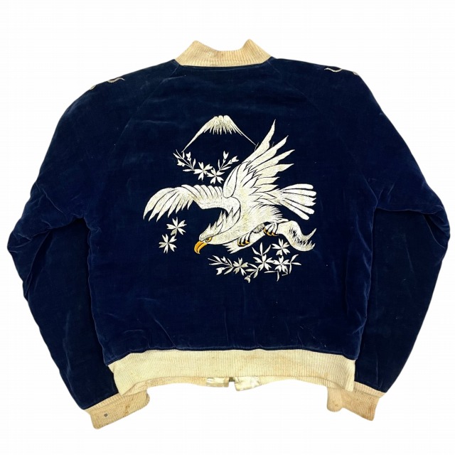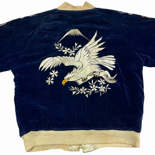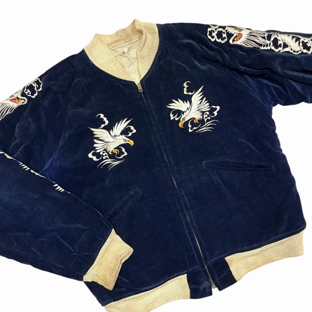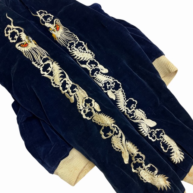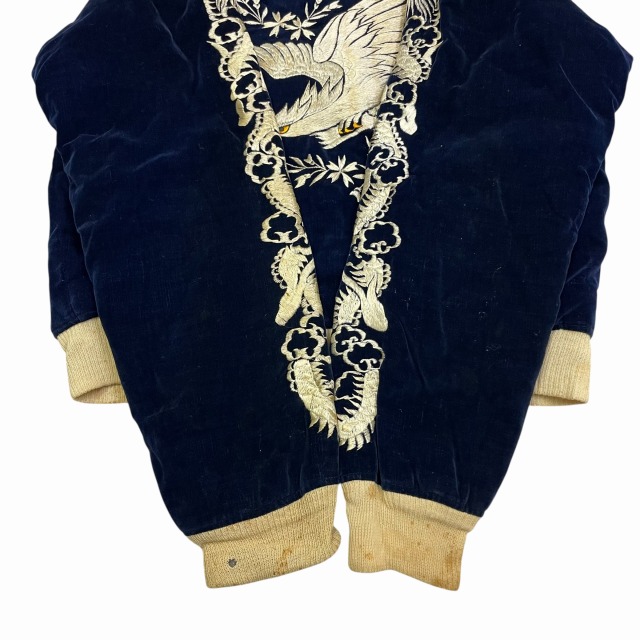 「別珍、ネイビー、鷲/龍/地図」