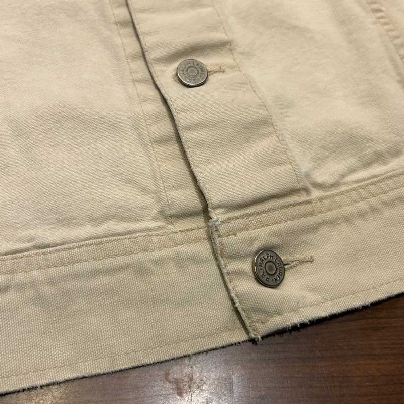 - 襟に汗染みや複数個所に細かな汚れ、スレやアタリ等の着用感がございます。その他に目立つ汚れやダメージは無く古着慣れされた方でしたら着用可能な状態です。
