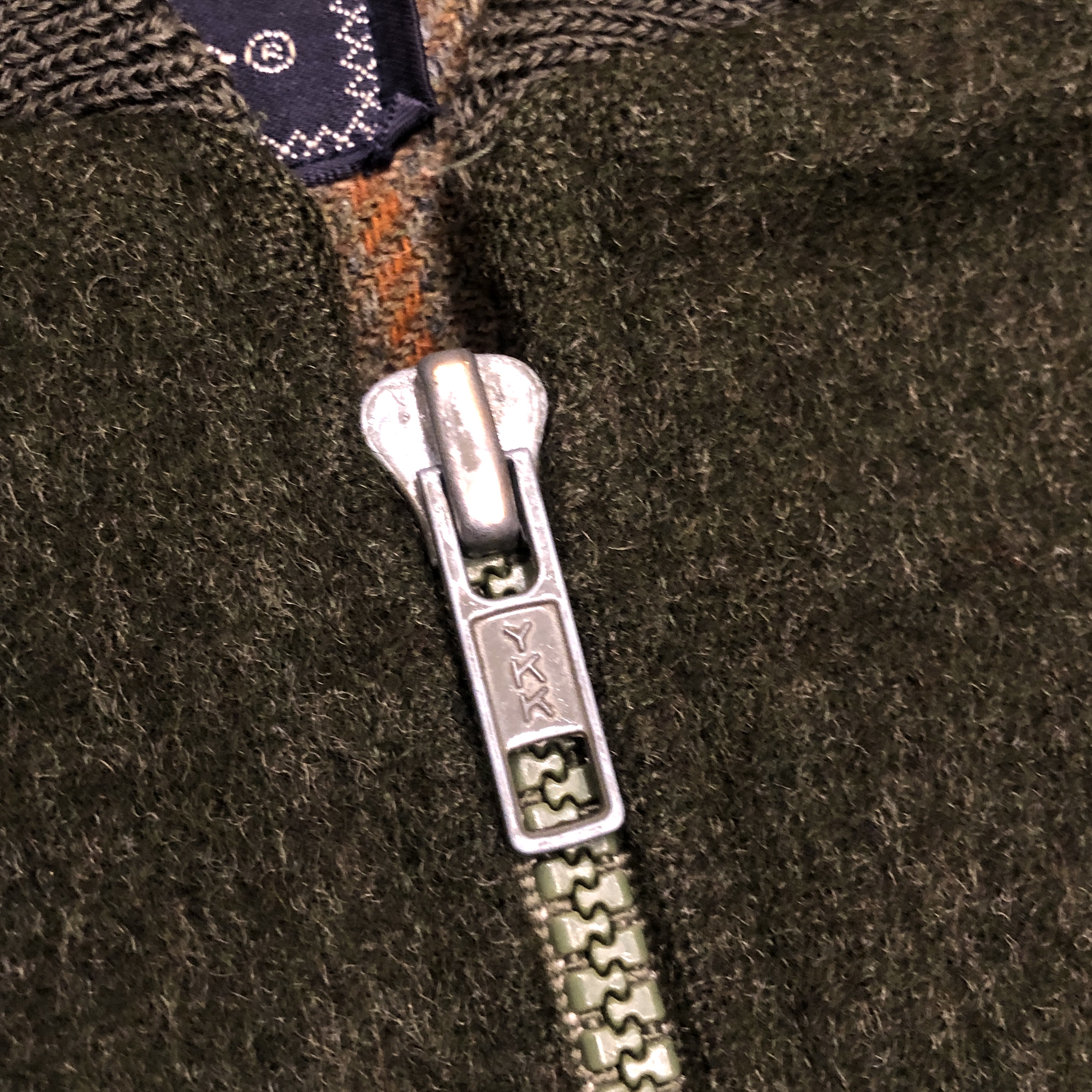 〈Burberrys〉が手掛けた、ローデンクロス素材のジップブルゾン。深いフォレストグリーンのウール地は、しっとりとした光沢と滑らかな起毛感を備え、一般的なメルトンとは一線を画す上質な風合いです。