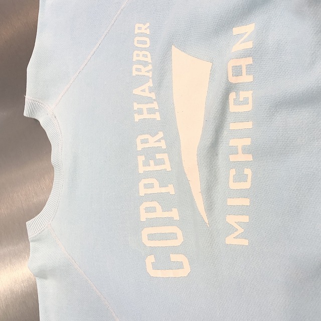 サックスボディ、白ラバー3段プリント「COPPER HARBOR MICHIGAN」
