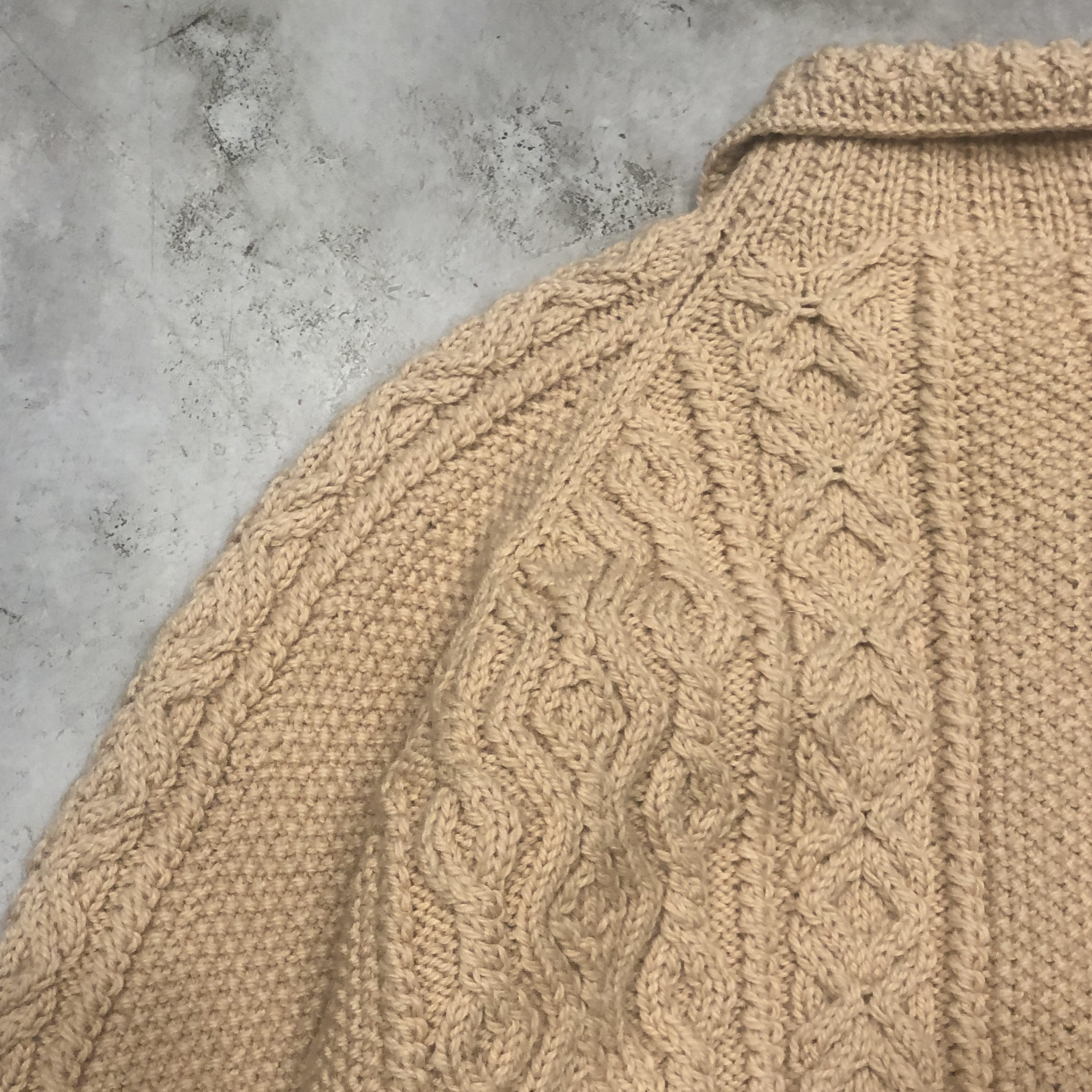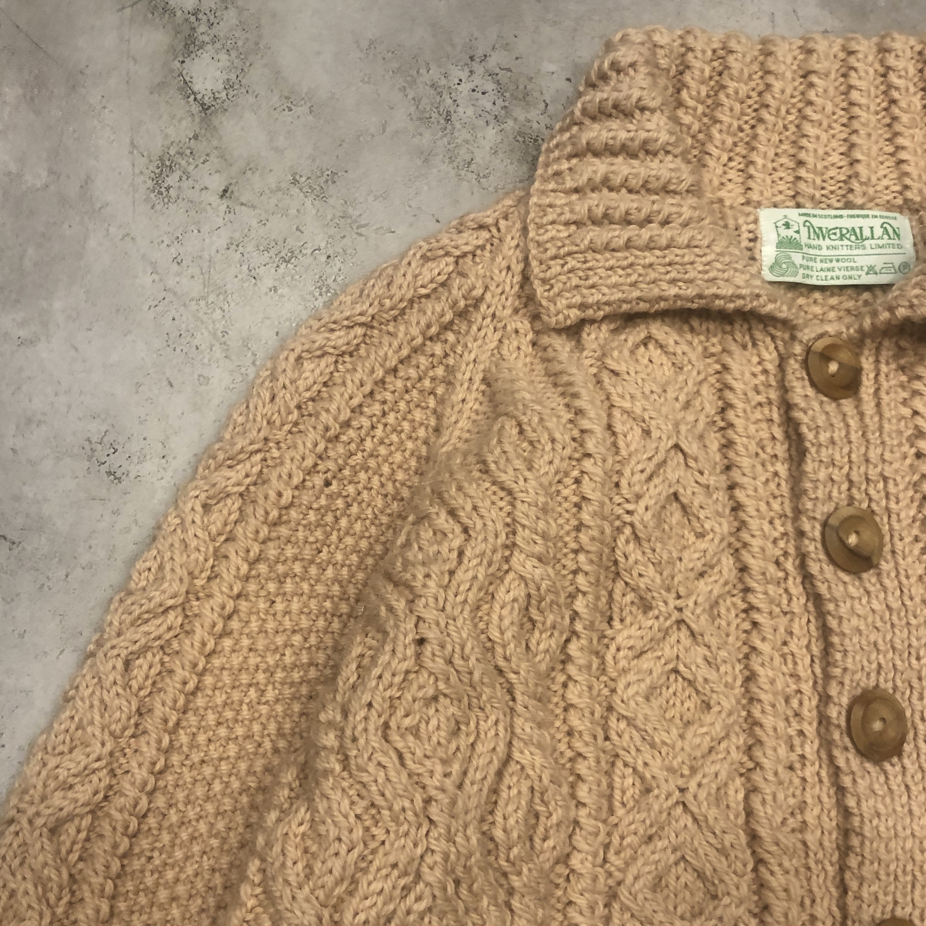 - 1970年代より続くスコットランド発の名門〈INVERALLAN〉による、名作「3A」ハンドニットカーディガンのご紹介です。熟練した職人の手仕事により、1着編み上げるのに60時間以上を要するとも言われる名品。クラシックなアラン編みの模様と、存在感のあるウッドボタン、ざっくりとしたピュアニューウールの肉厚な風合いが相まって、まさに“一生モノ”と呼ぶにふさわしい佇まいです。
