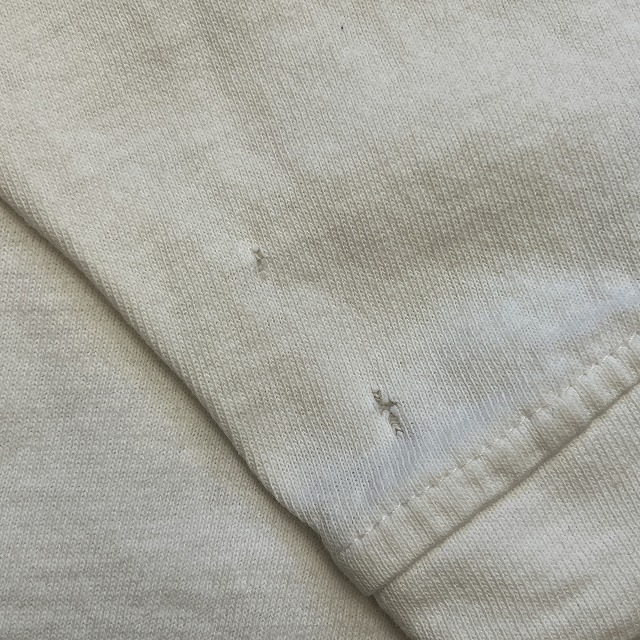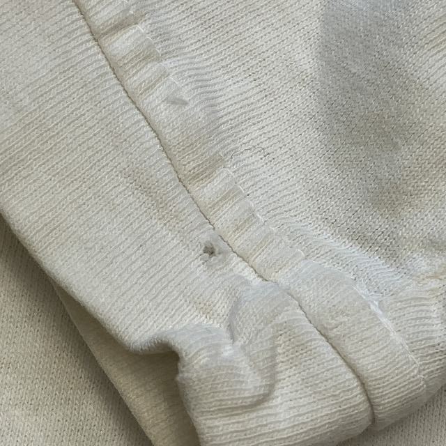 - 袖先に数箇所小穴、右袖や左脇下のステッチ抜けがみられます。