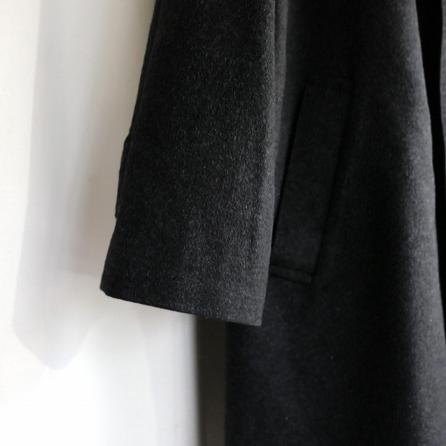美しい光沢に軽量で柔らかく、高い保温性と保湿性を備え、特有のヌメリ感がある高級素材のカシミアは繊維の宝石とも呼ばれており、当個体もこの生地のおかげで気になりがちな肩山が張る感じがなく、全体的なシルエットも非常に秀逸。