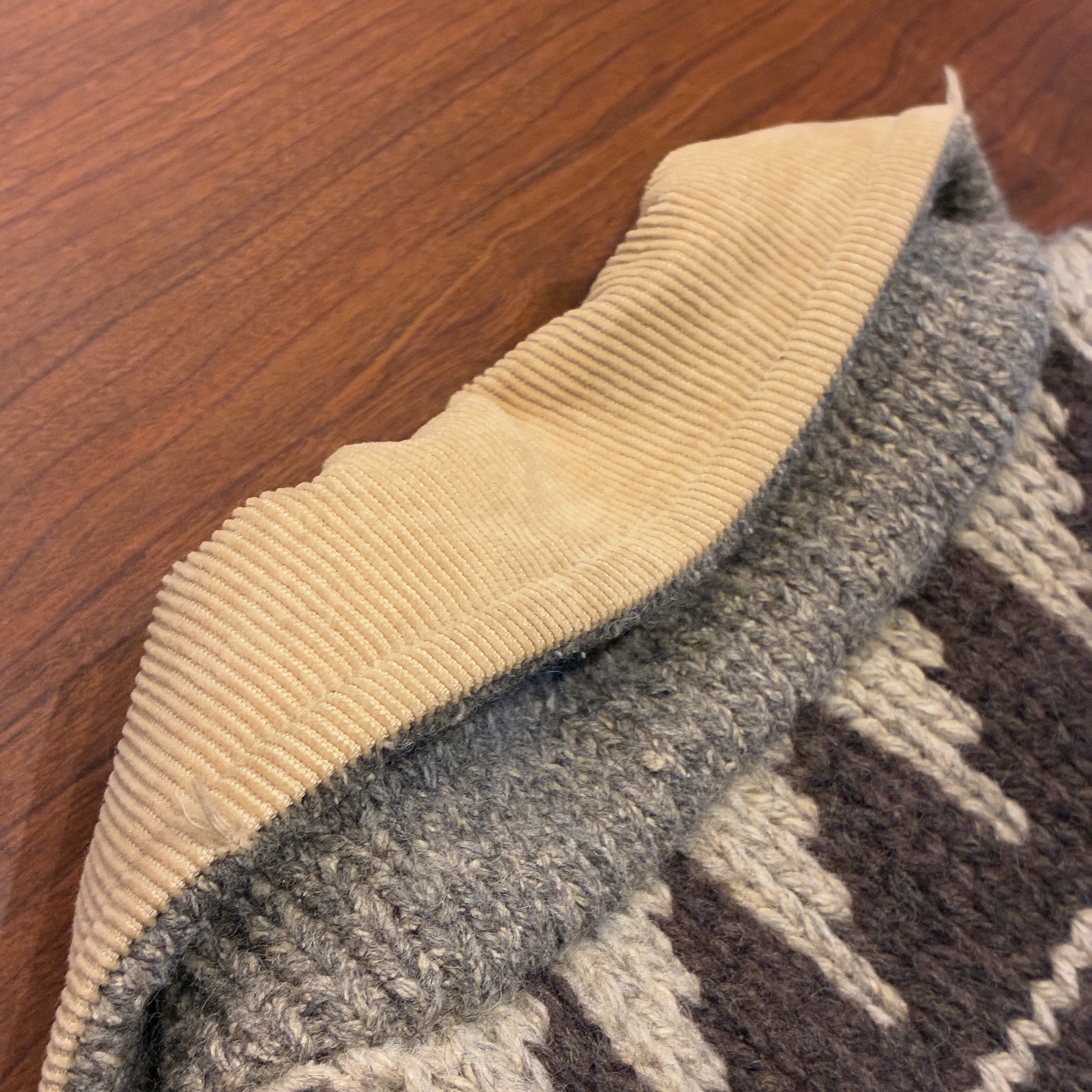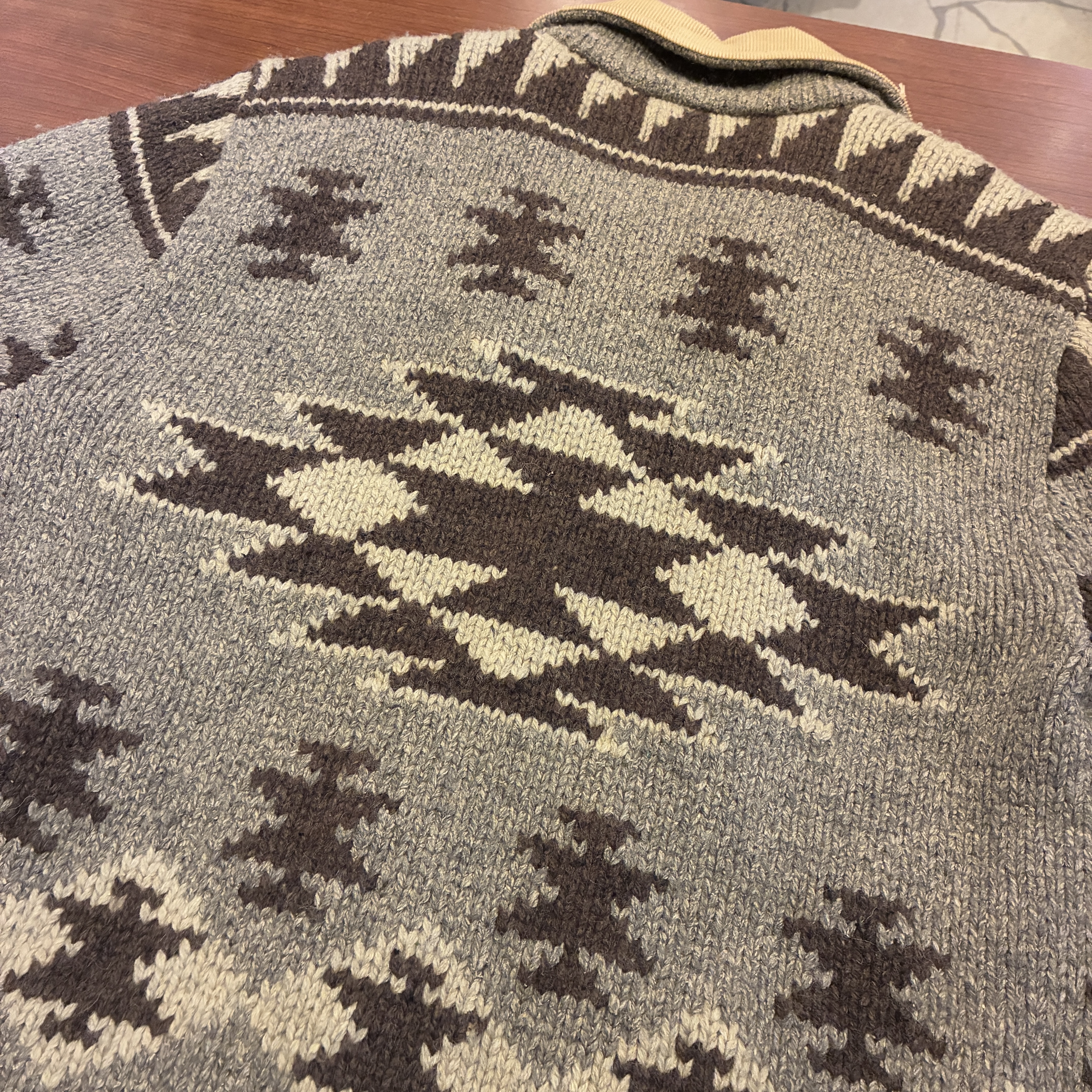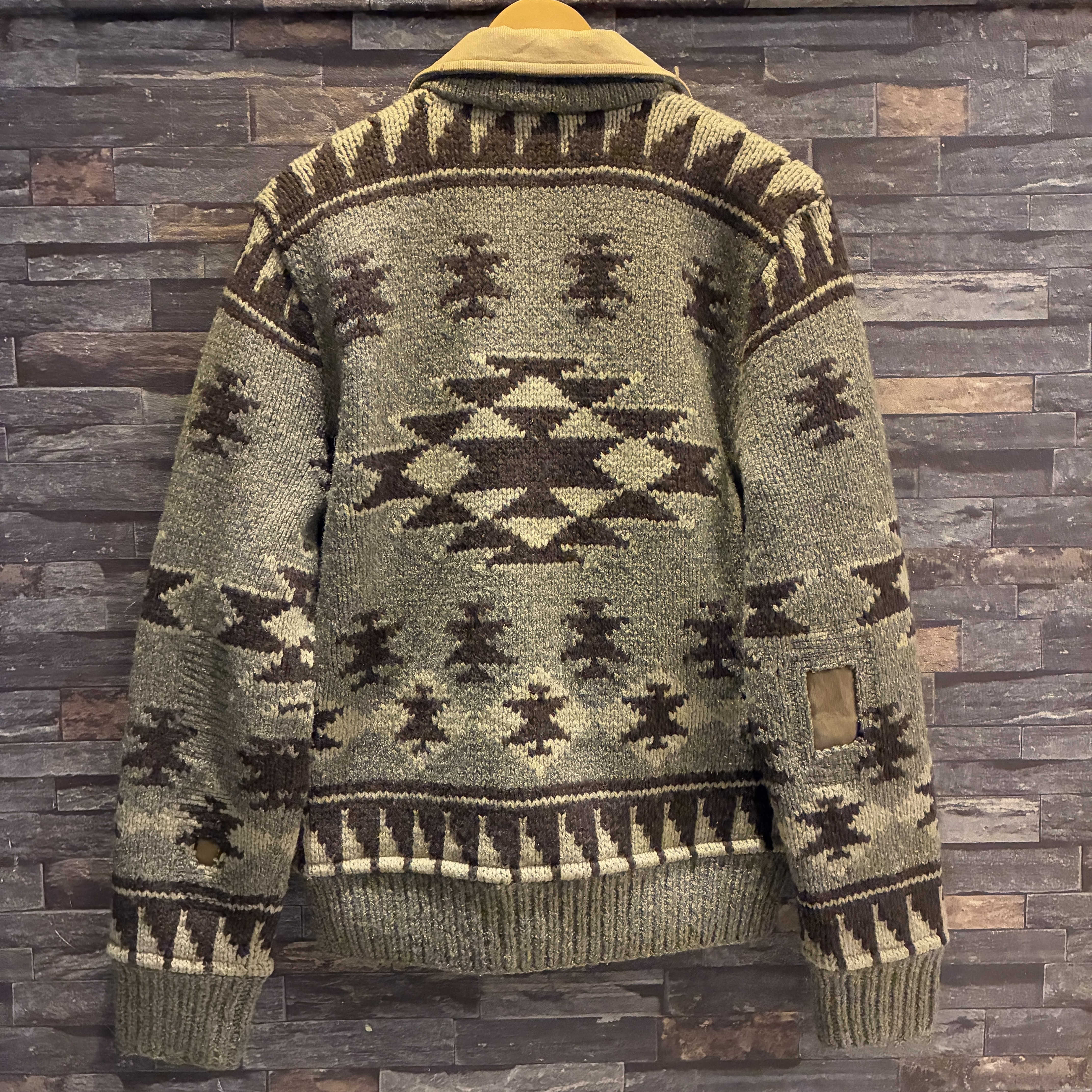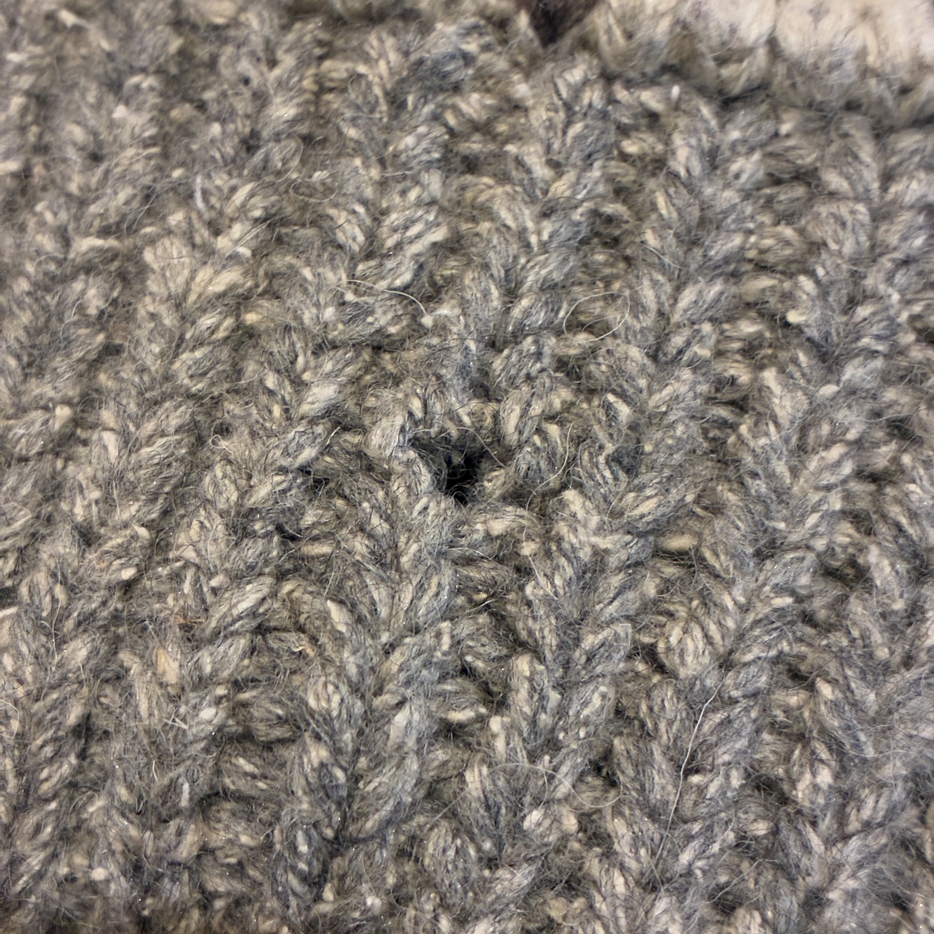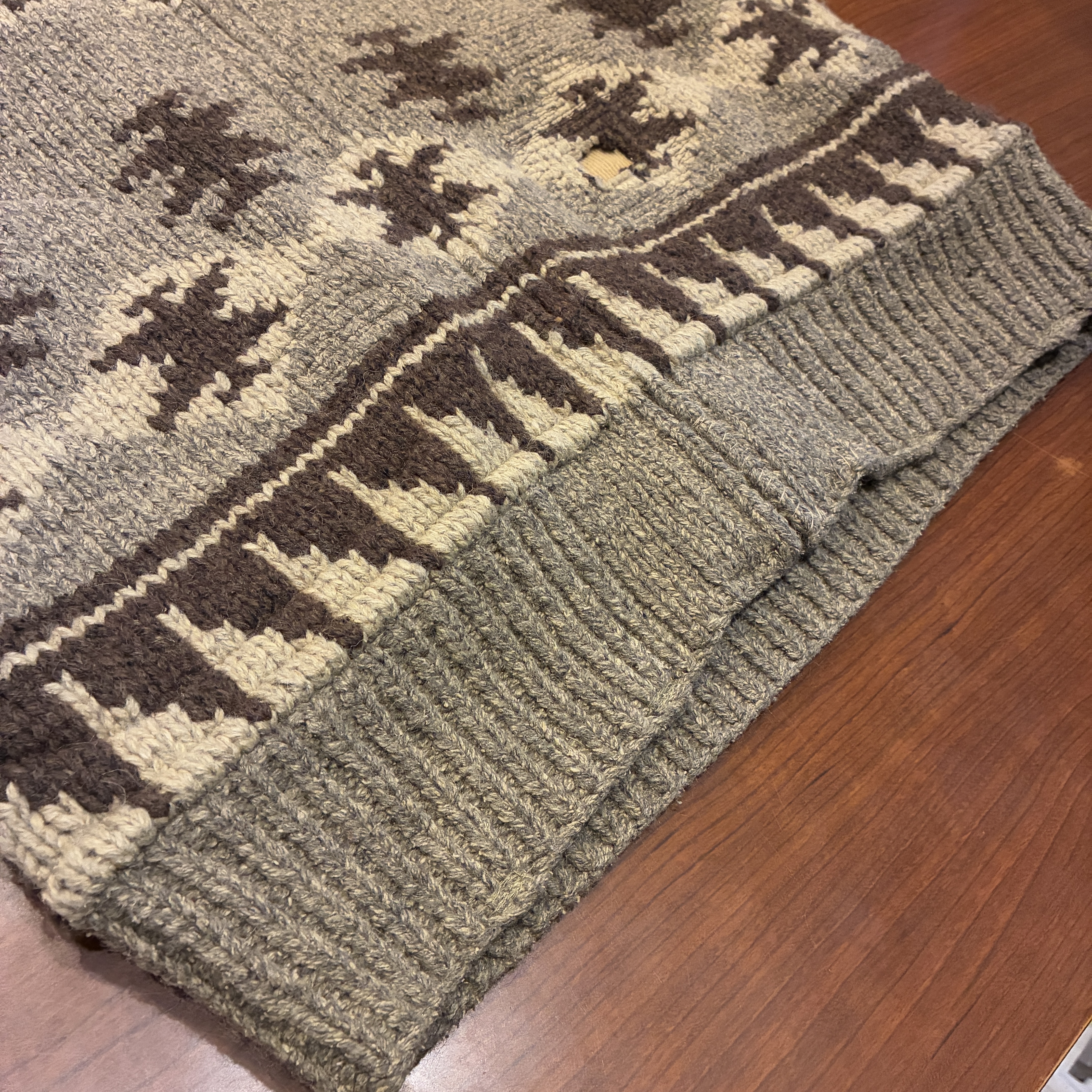 ニット製品特有の毛羽立ちや網目の荒い箇所がございますが、目立つ汚れやダメージ等は無くまだまだ問題無く着用していただける状態です。