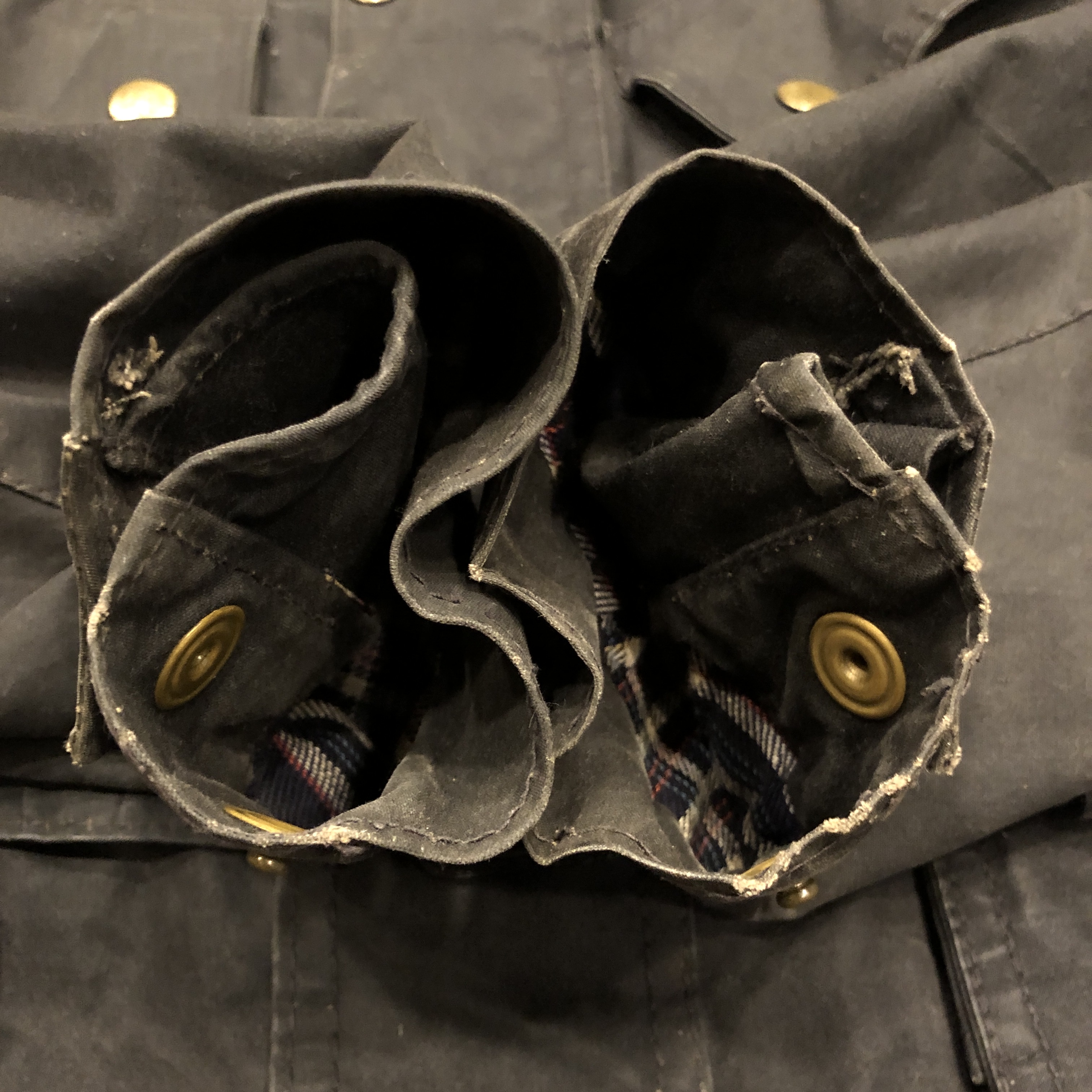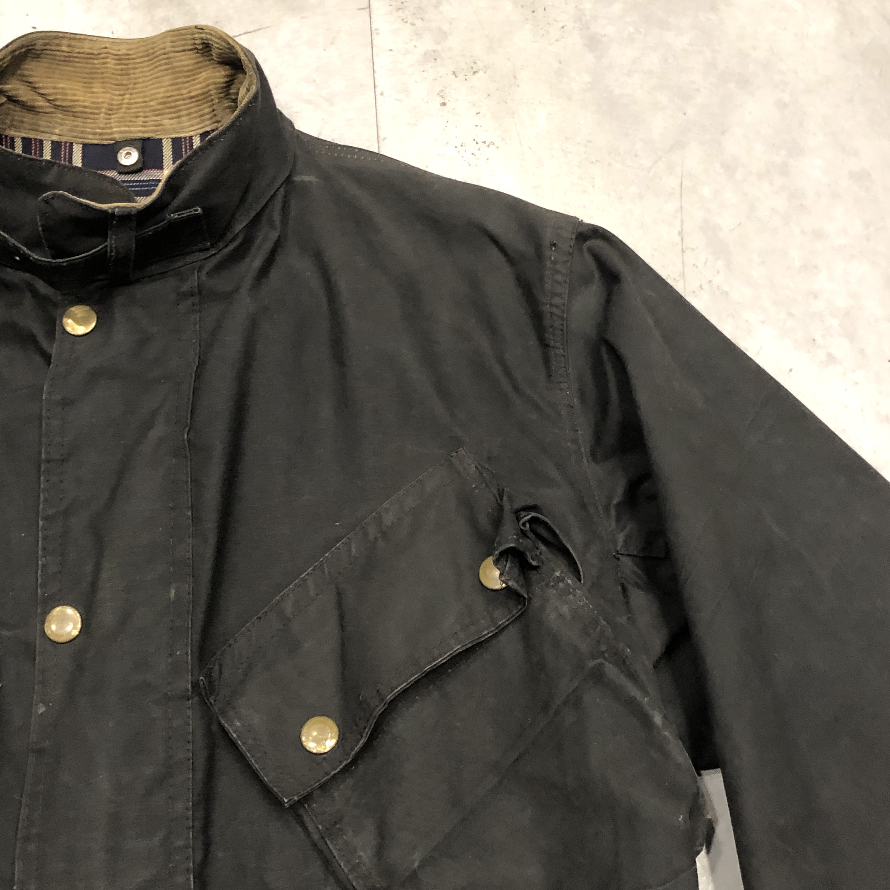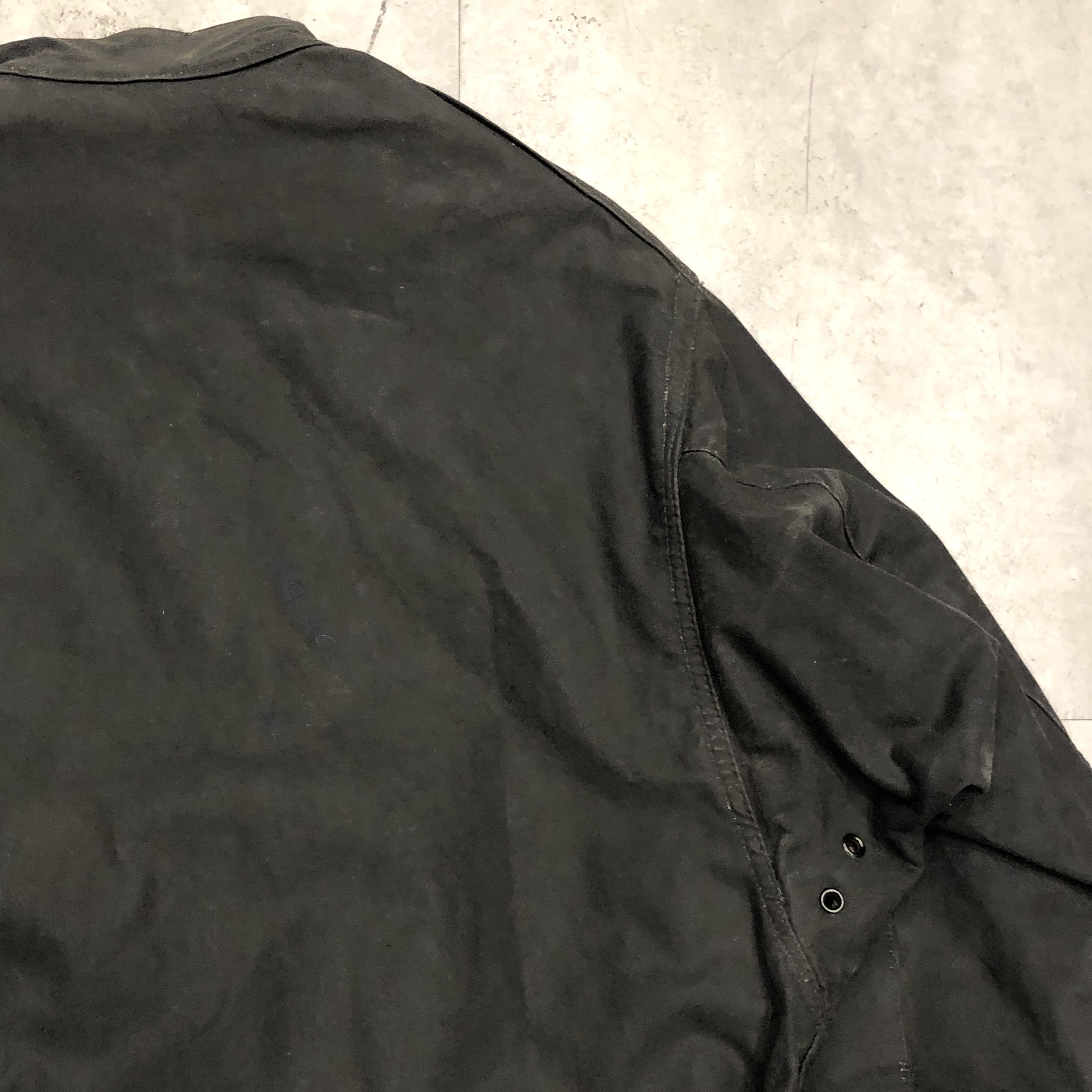 - 年代相応の着用感、オイルドコットン特有のスレ、アタリ、内側ポケット部分の破れ等が画像の様にございますが、古着慣れされている方でしたら問題なくお使いいただけます。