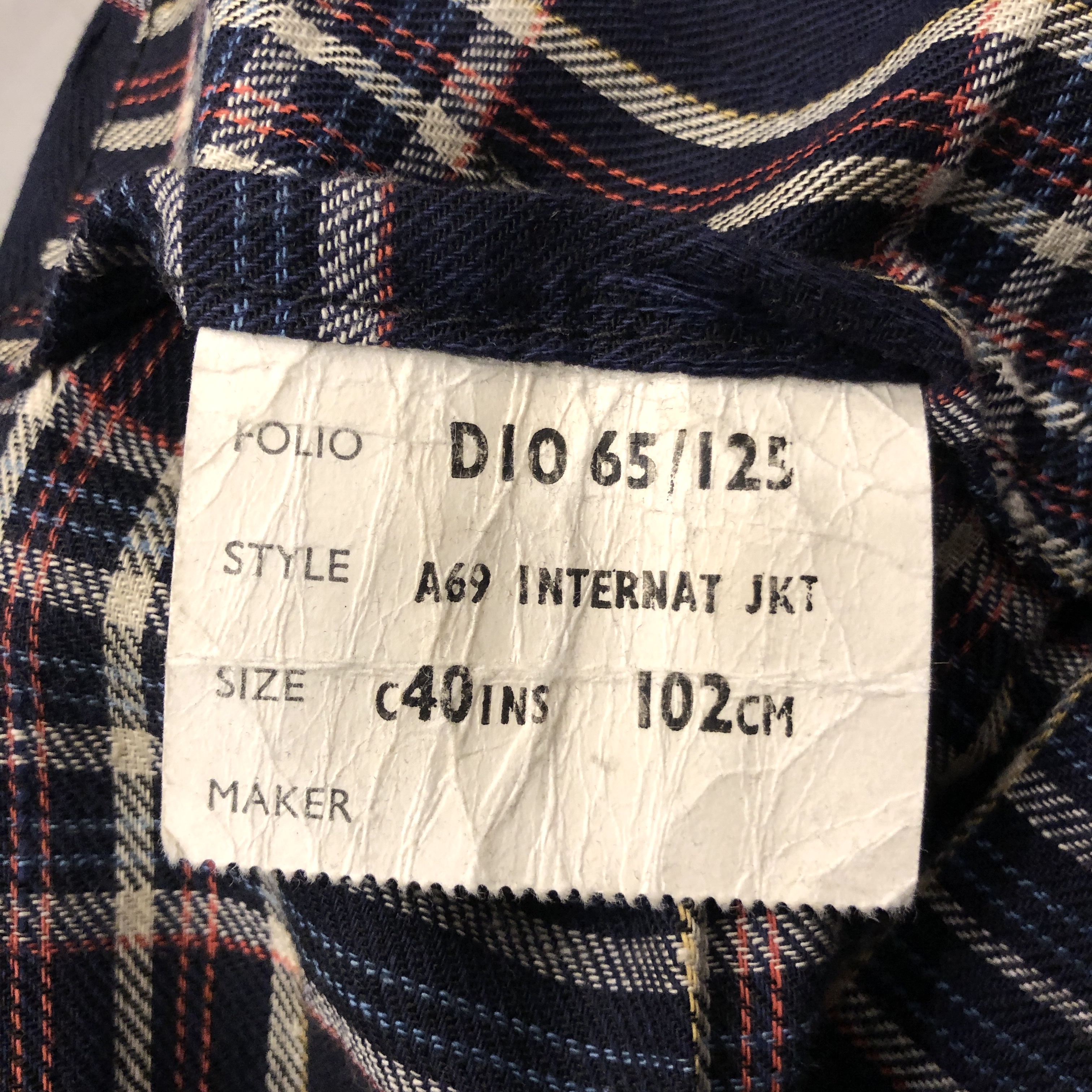 裏地のチェックパターンも当時のまま、英国アウトフィットの原点を伝えます。