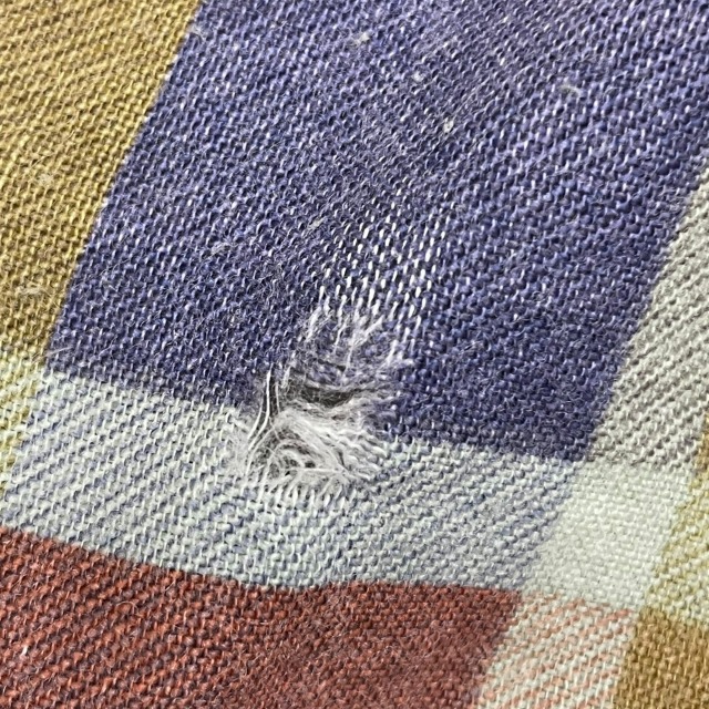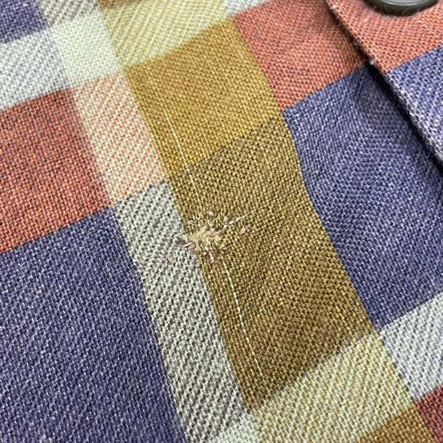 - 画像のように、スレがあり、左袖に穴、フロント下から2番目のボタン付近にリペアがございます。