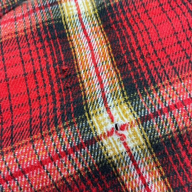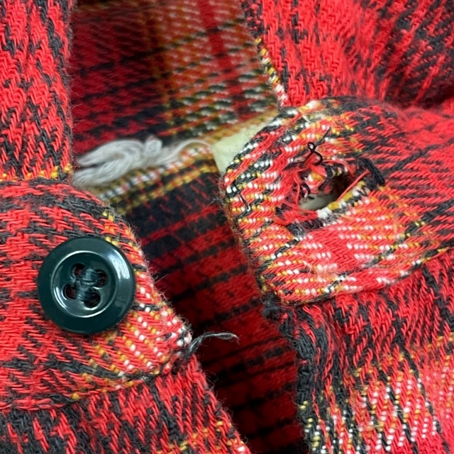 - 画像のように、右裾上サイド縫製部分にステッチ抜けがあり、後左肩下付近に穴がございます。