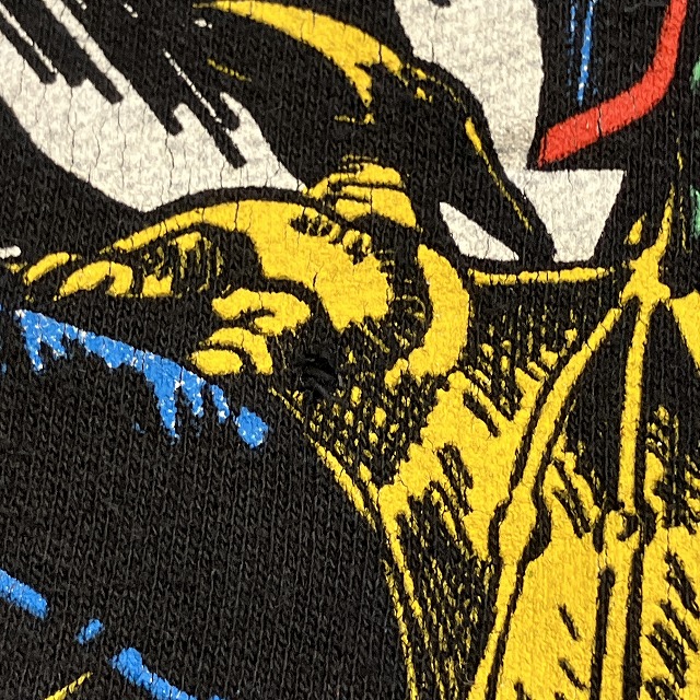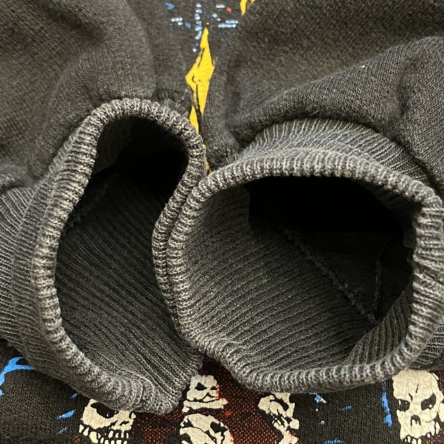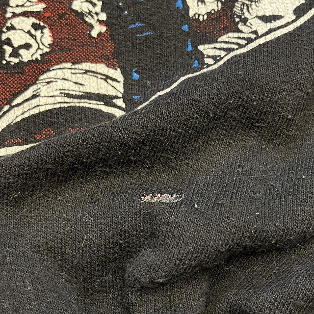 - 正面プリント部分に小穴がみられます。また、裾リブ付近に小さな汚れがみられます。その他、スレ、アタリ、毛玉等の年代相応の着用感ございますが、ユーズド慣れされた方でしたら問題なく着用していただけます。