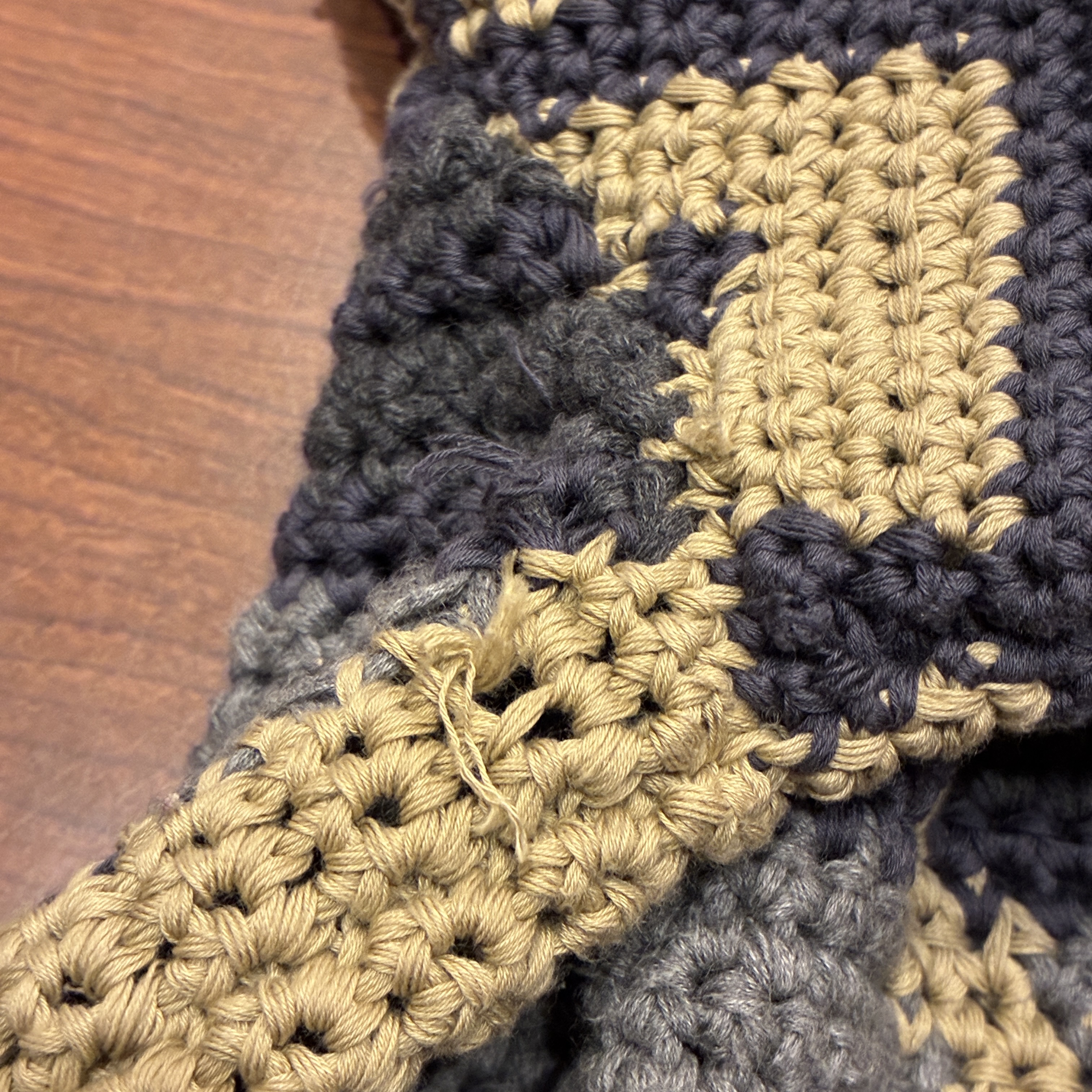 - ハンドニット製品特有の糸の飛び出しや多少の着用感が見られますが、目立つダメージ等は無くまだまだ問題無く着用していただける状態です。