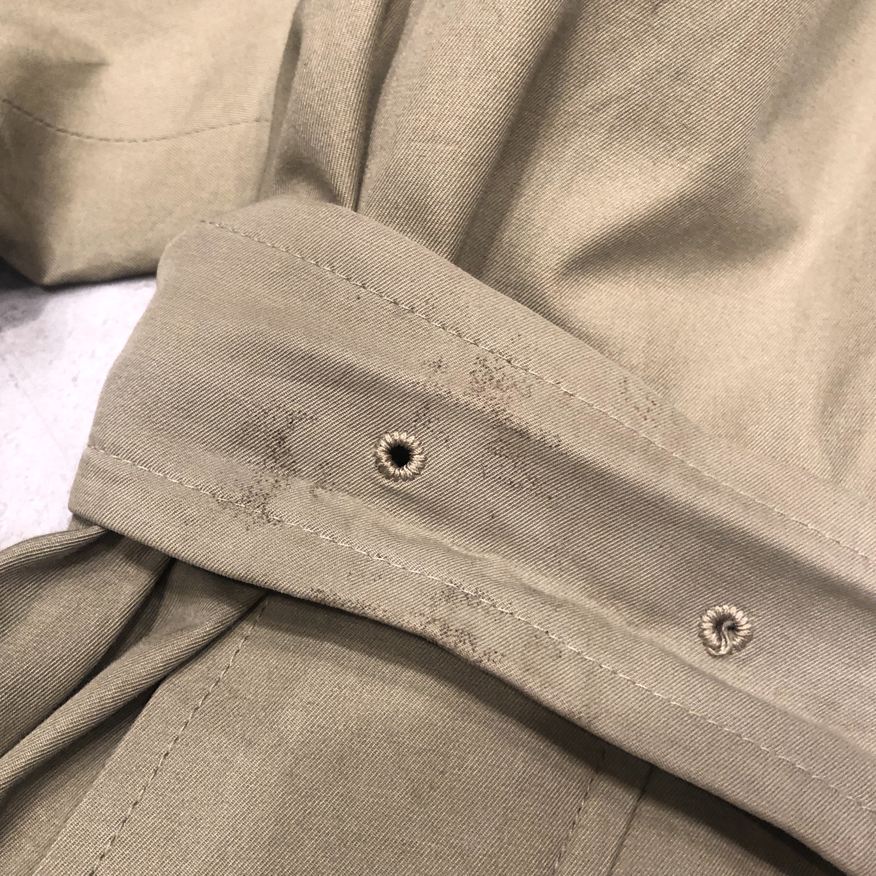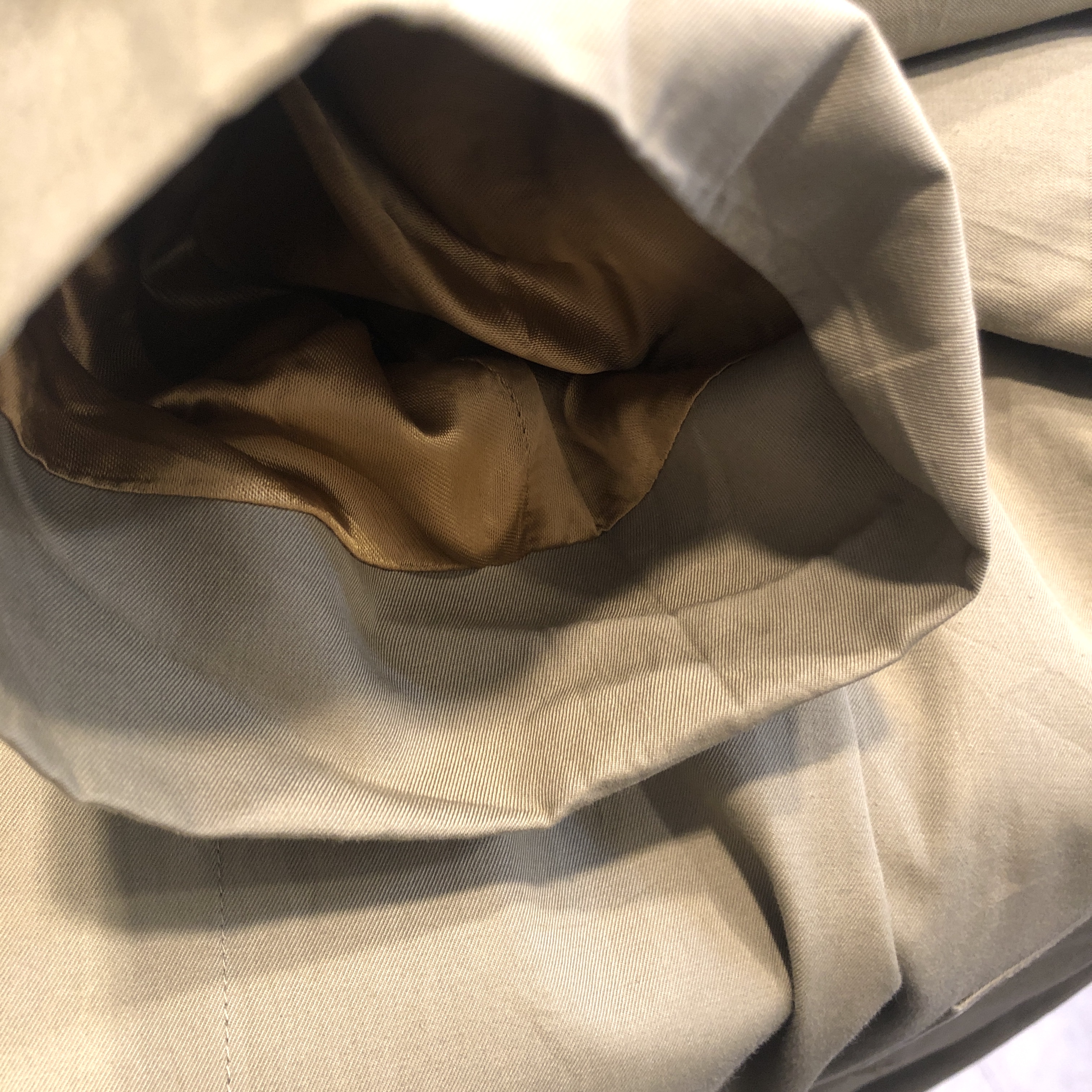 年代相応の着用感と画像の様なスレ、アタリ、汚れ、ベルトのDカン欠損、左袖口のプレスによる歪み等がございますが、着用に支障をきたすダメージ等はございません。