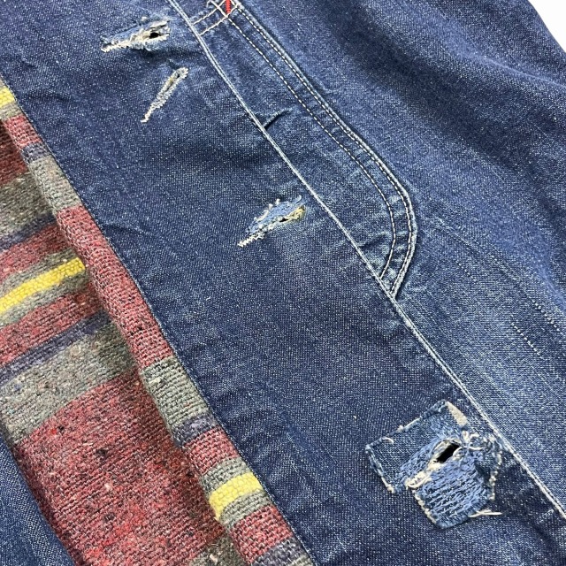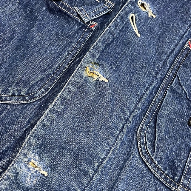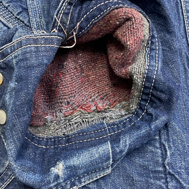 第4ボタン付け根の生地や右袖口のライナーにダメージがございます。