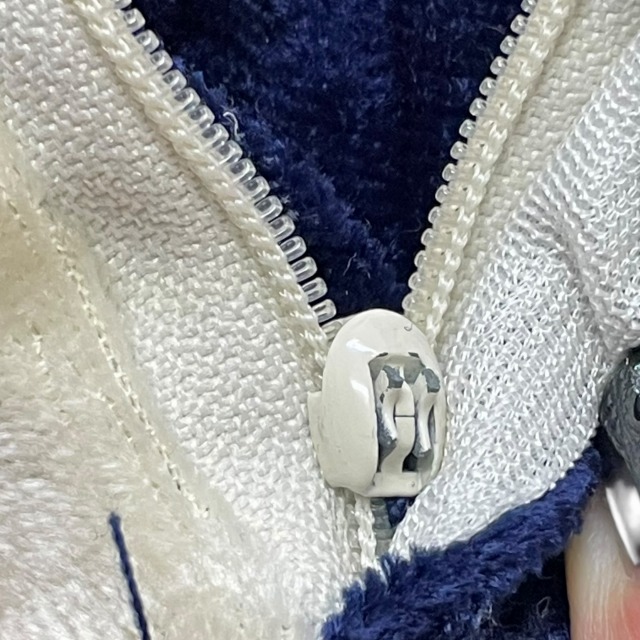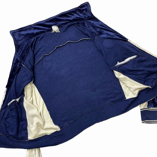 「ネイビー×オフホワイト、ベロア、サイズL」