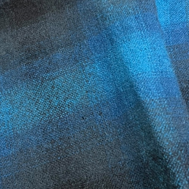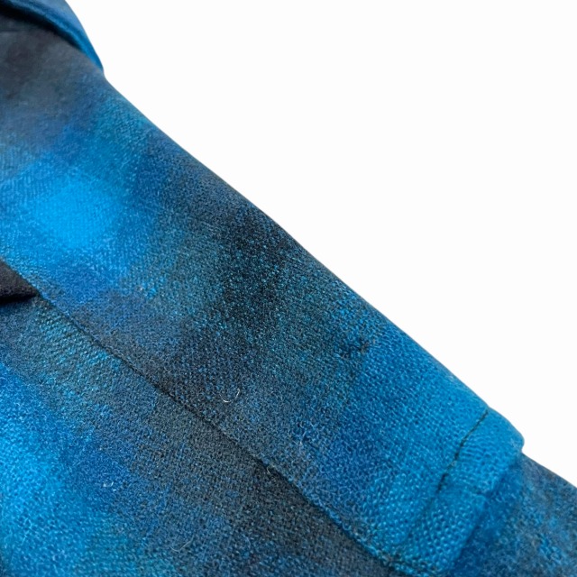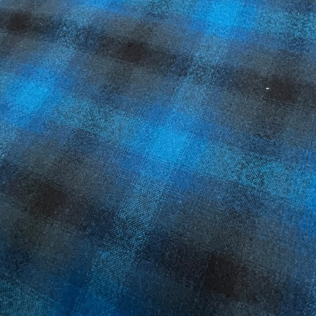 「ブルー×ブラック、オンブレチェック、サイズM」