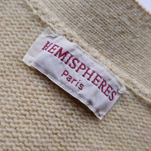エミスフェールは自国のフランスは勿論、日本でも人気に火がつき、株式会社カネマンが店舗を構え、輸入とライセンス生産を始めますが、当個体は輸入された本国オリジナルアイテムの滑らかでソフトな肌触りのジーロンラムズウールを使用したカーディガンです。