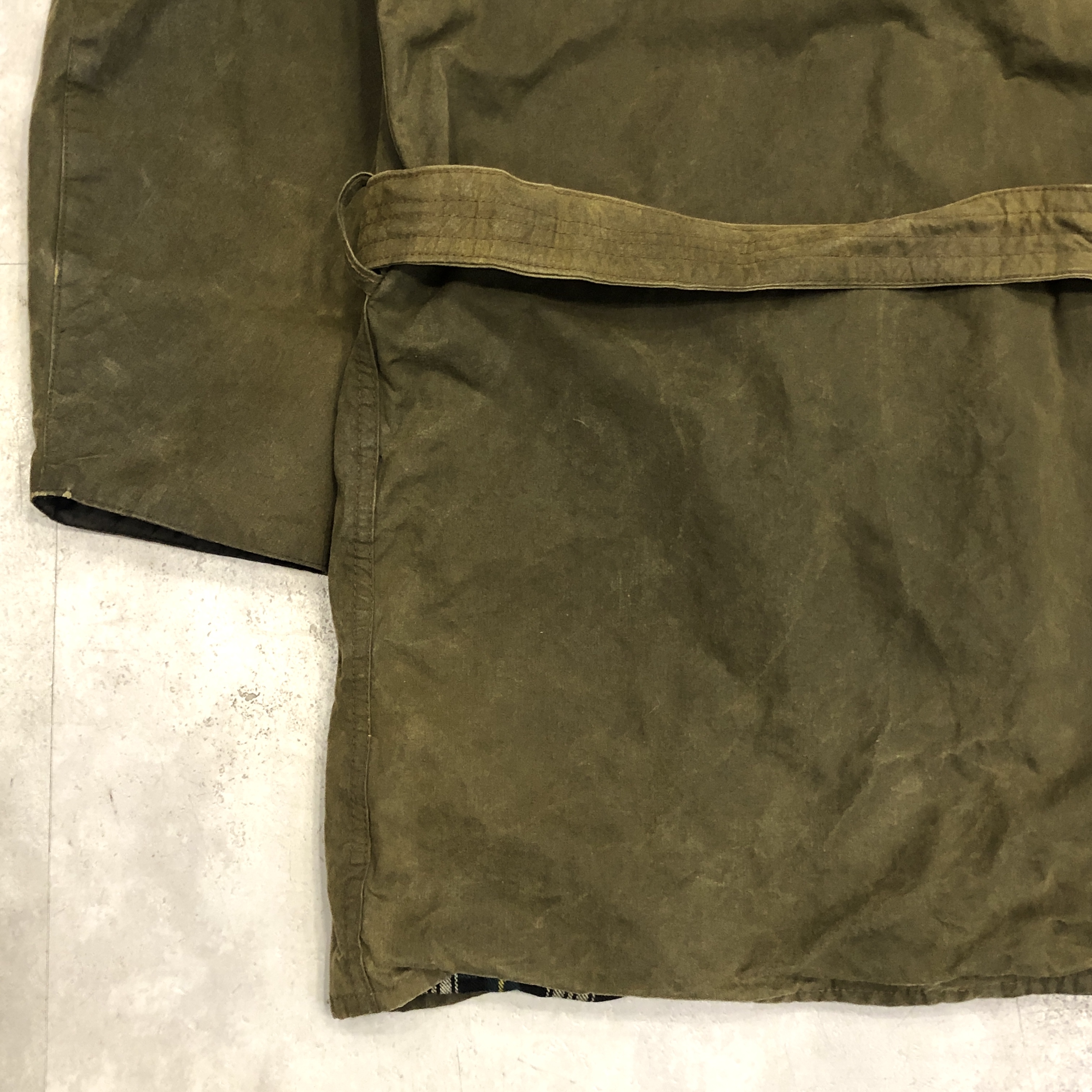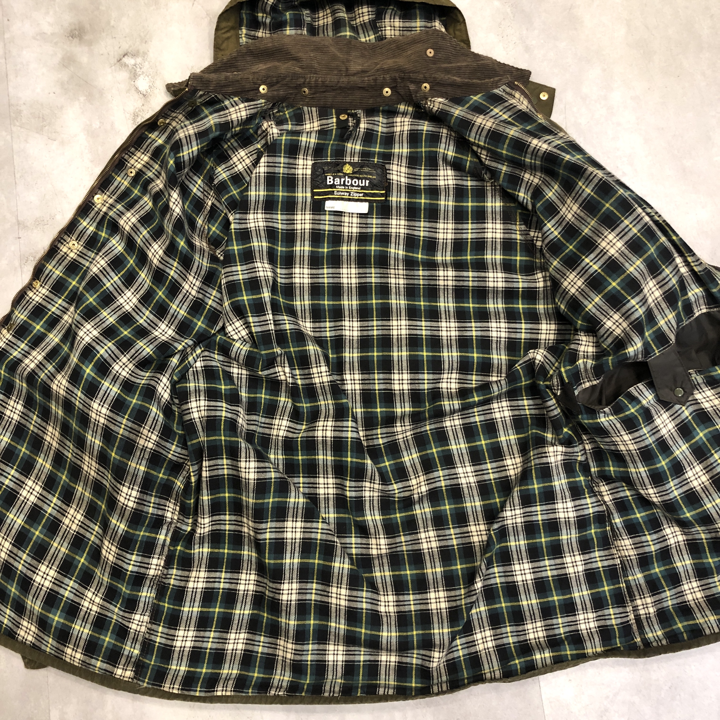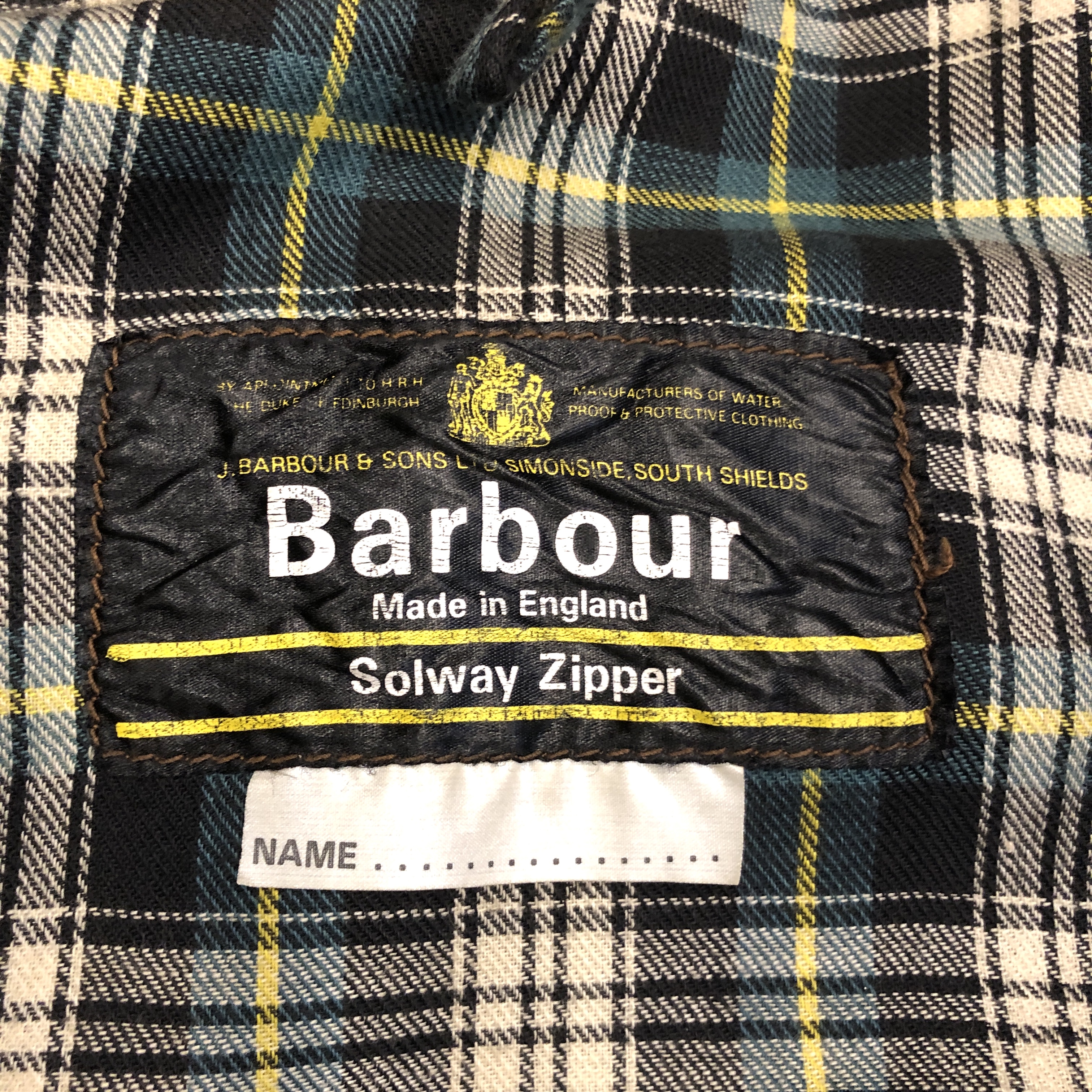 - 英国アウトドアウェアの象徴、Barbourの名作「Solway Zipper」。本品は王室御用達(1ワラント)時代の、ヴィンテージ市場でも高く評価される希少な個体です。伝統のワックスドコットンは深みあるオリーブカラーを湛え、まるで時の流れを封じ込めたかのよう。襟元の太畝コーデュロイも柔らかく、裏地のチェックは英国らしい品格を感じさせます。