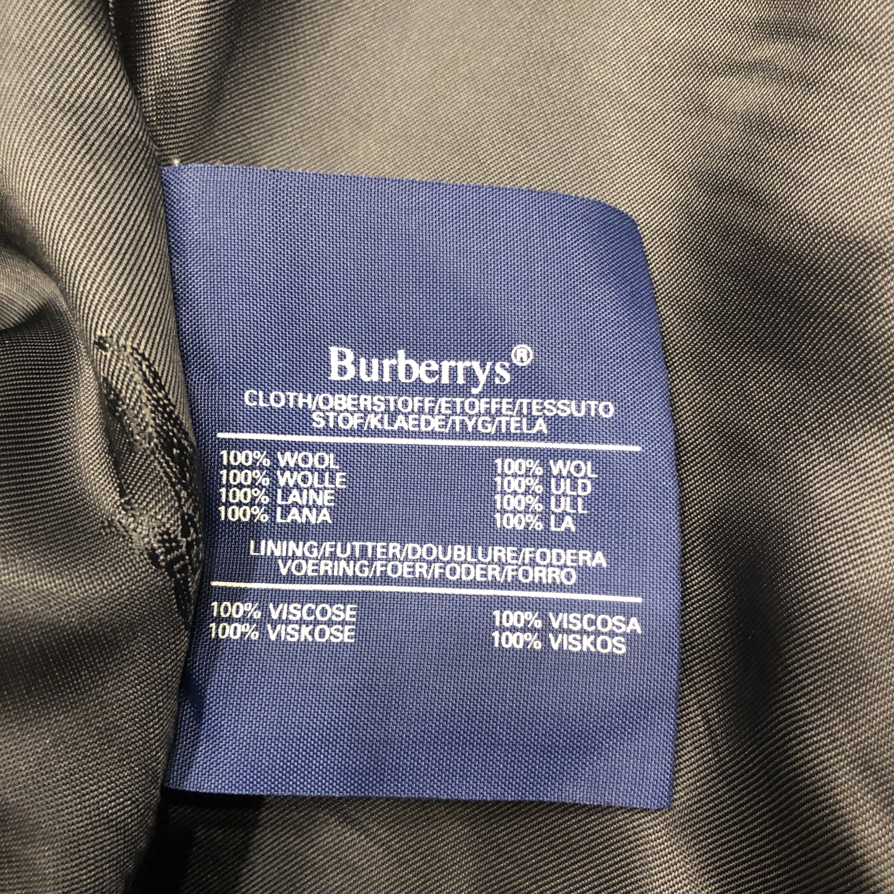 バーバリーズ特有の、ややドライで張りのあるウール地で、軽さよりも「安心感」を感じさせる質感です。
