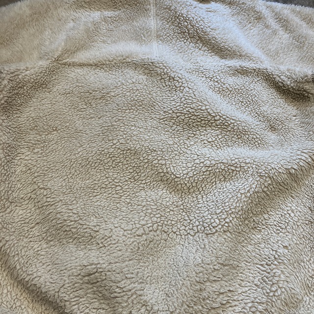 - 両袖先のパイル抜け、両肘や裾の毛潰れがみられます。