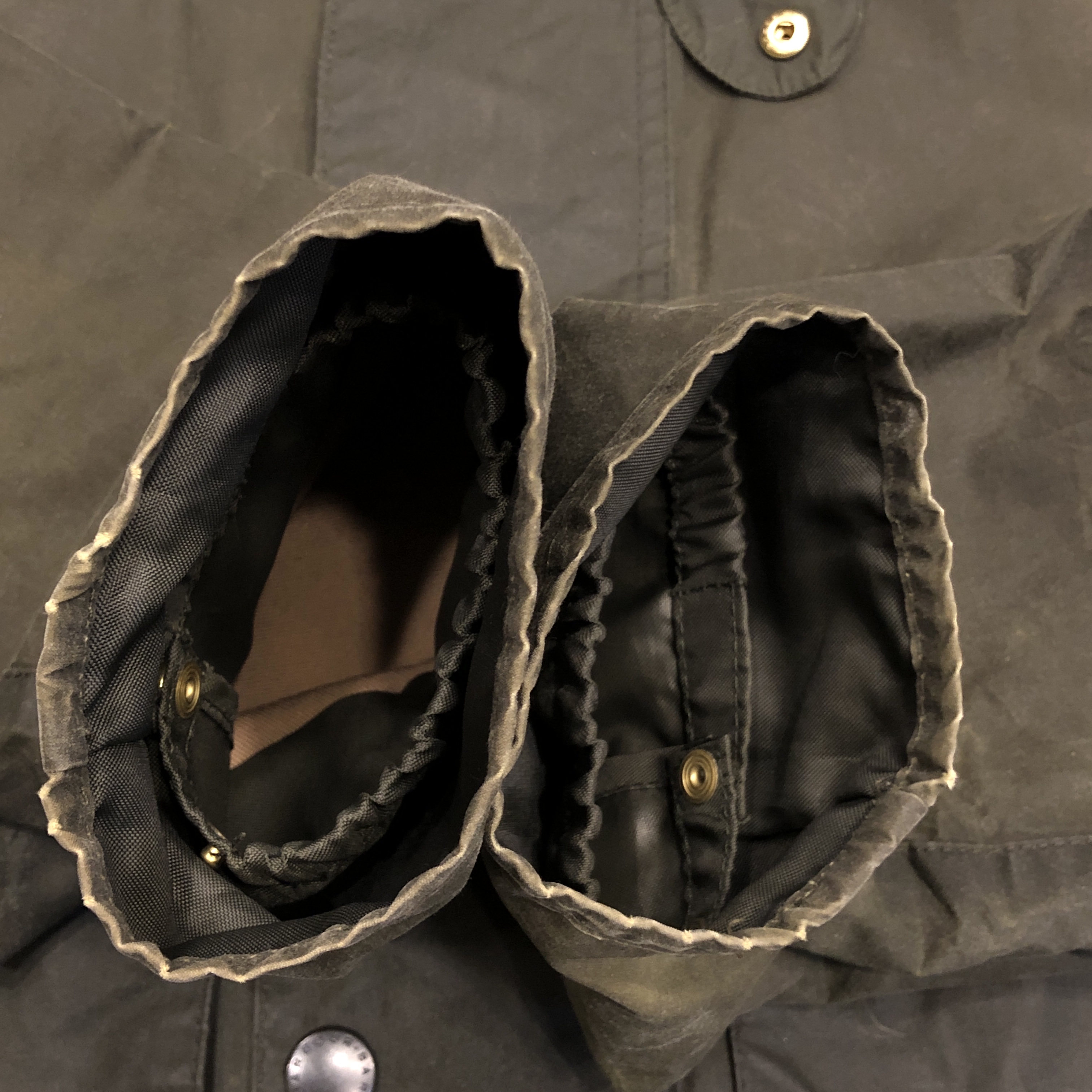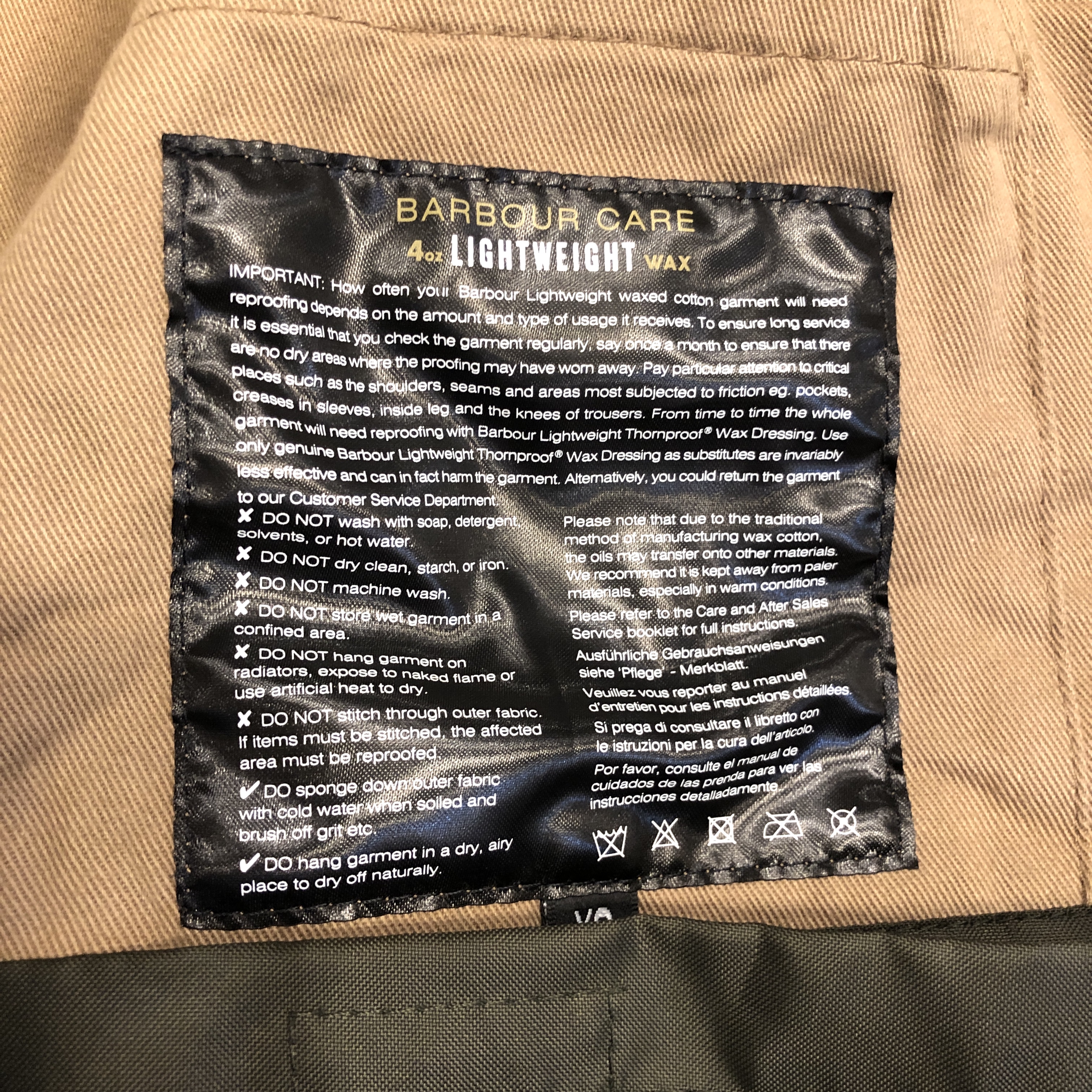 表地には 4oz LIGHTWEIGHT WAX を採用し、バブアー特有の重さや粘度が控えめ。くったりと馴染むドレープは、このモデルならでは。身頃裏はベージュ × オリーブの切り替え仕様で、過剰な演出を排したミニマルさが美しい。