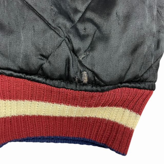両脇、袖切替部分、ポケットスレーキ等の縫製部分にホツレがございます。
