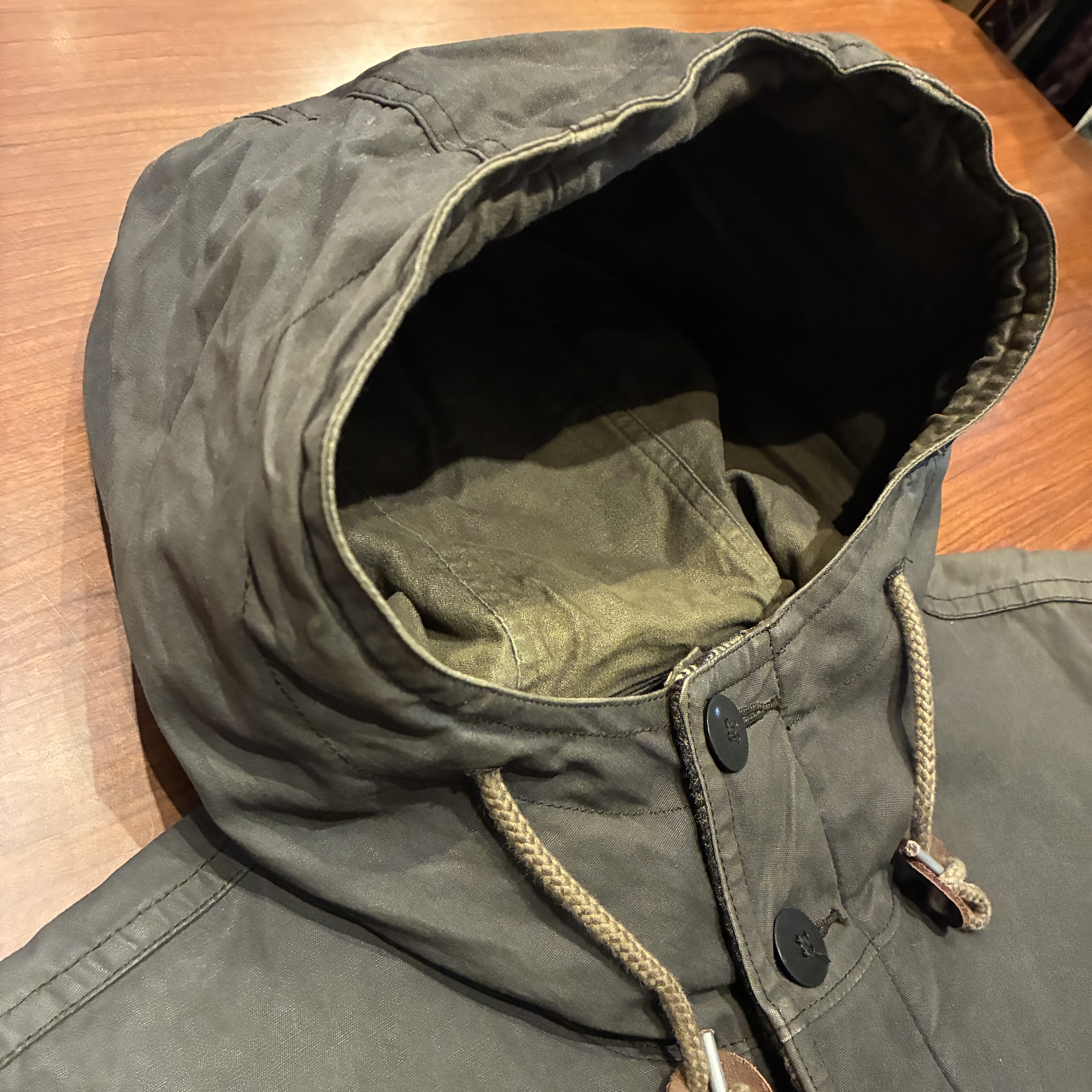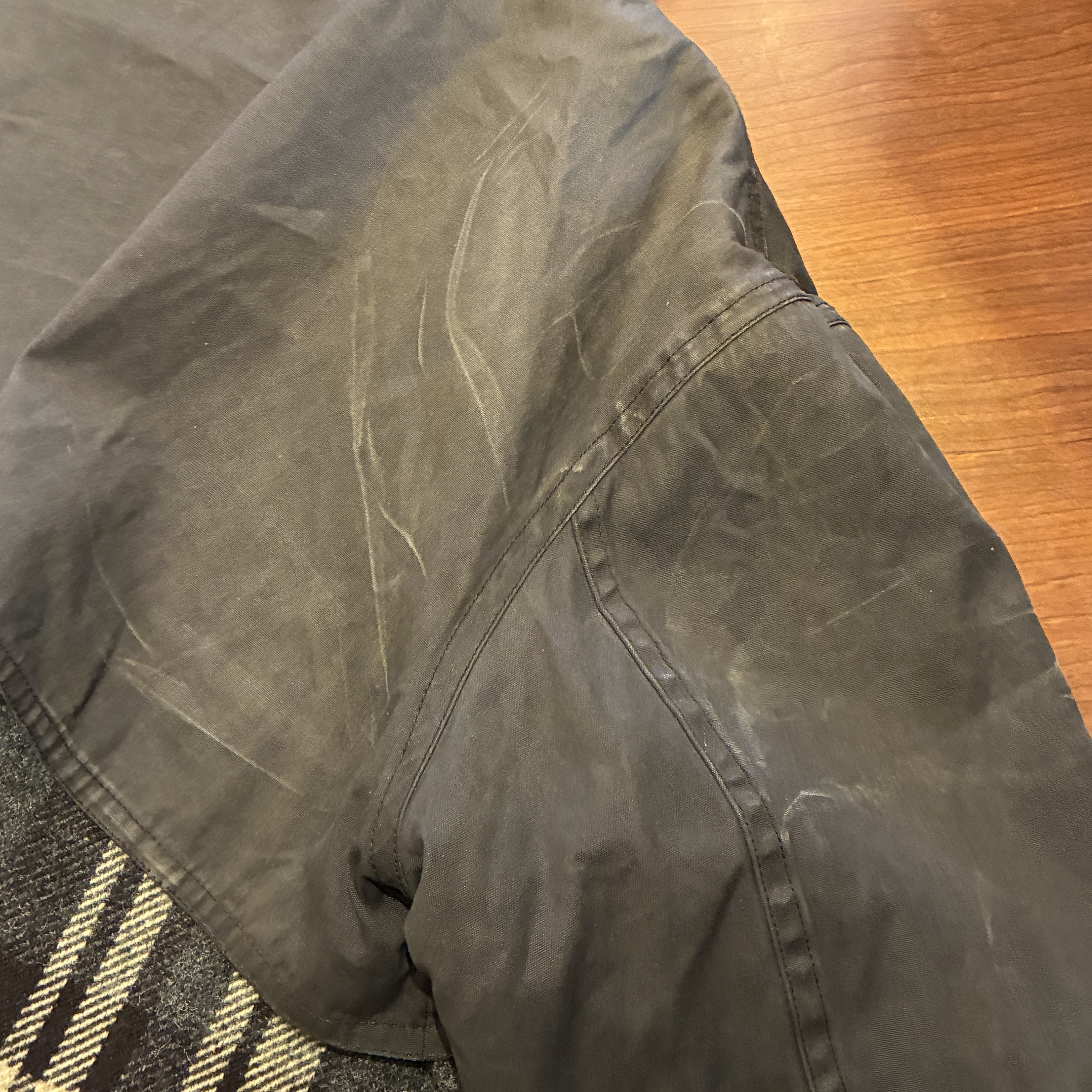 - 素材特有のアタリや袖に一部補修跡がございます。