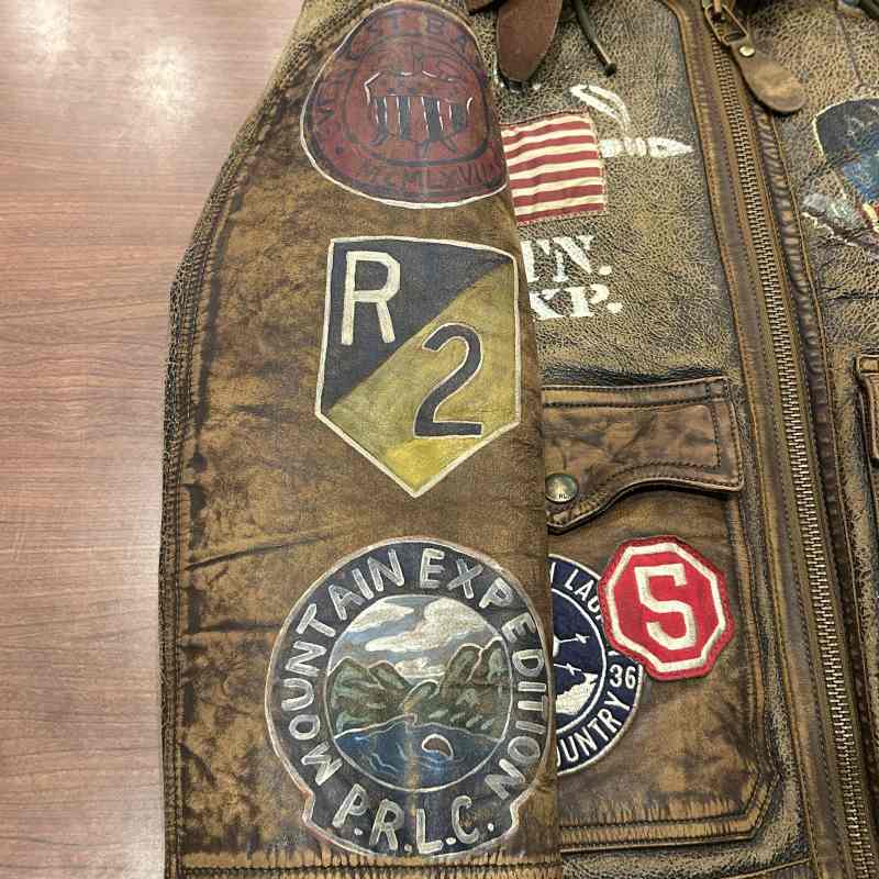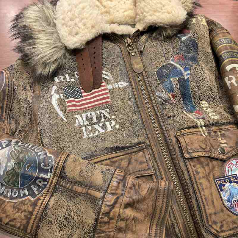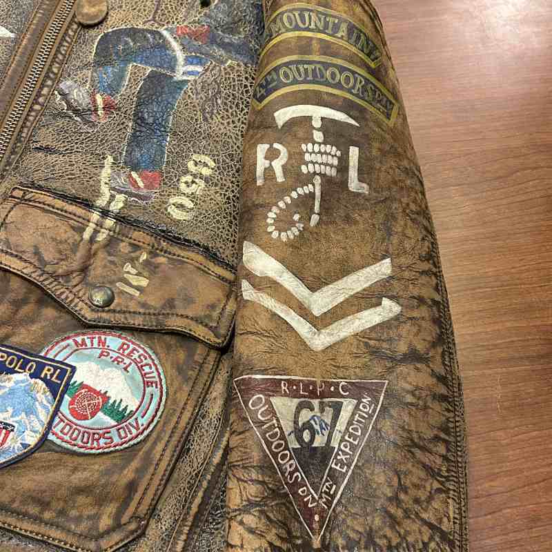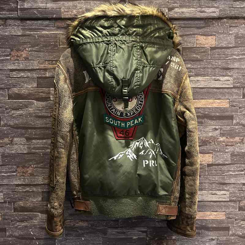 - B-3ボンバージャケットをベースにレザーとナイロンが組み合わせ、山岳救助隊のワッペンやハンドペイントのモチーフが施されたスペシャルなジャケットです。