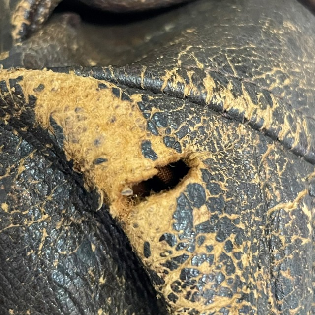 - 画像のように、レザーに劣化がございますので、破れ、クラックがあり、ボロボロと剥がれてきます。