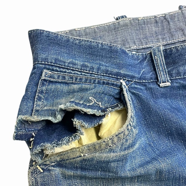 - 画像のように、キズ、汚れ、ステッチ抜けがあり、右ヒップポケット口に破れがございます。