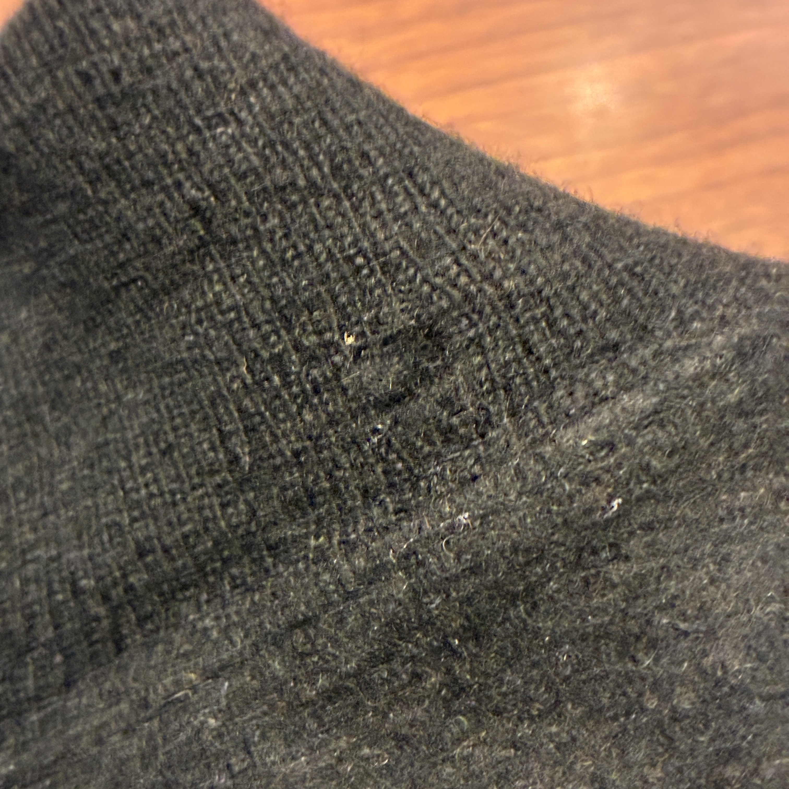 - 多少の毛羽立ちやリブ部分にダメージ、小穴、伸びが見られます。