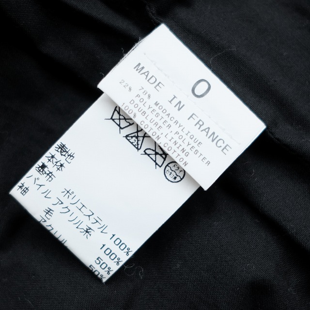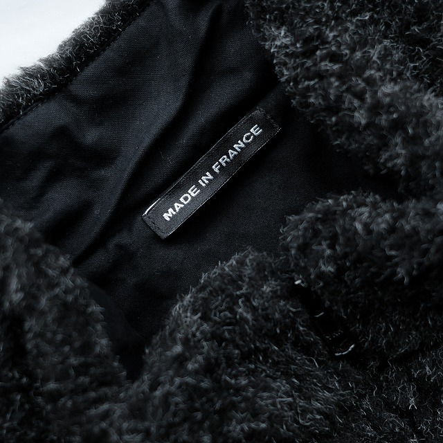 フェイクファーのベストにドライバーズニットの袖がドッキングしたディテールで、数あるブランドの中でもなかなか見かけないですね。