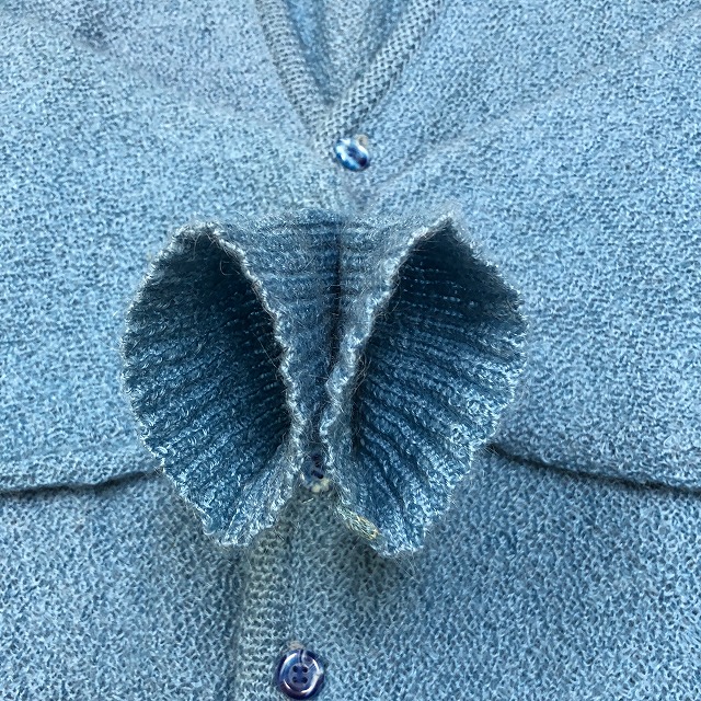 - 肩幅47.5cm 身幅58cm 着丈69cm 袖丈79.5cm(リブが長い作りで、半分に折り曲げた状態だと70cmです)