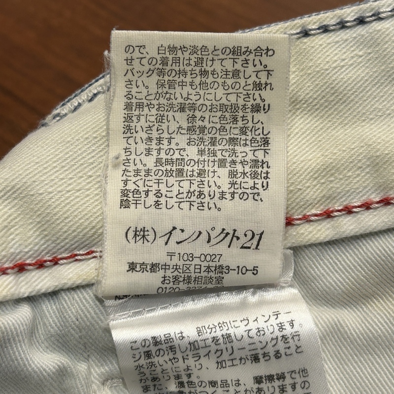 - 元々ダメージ、ユーズド加工が施されております。着用感がございますが、その他に目立つダメージ等は無く、まだまだ問題無く着用していただける状態です。