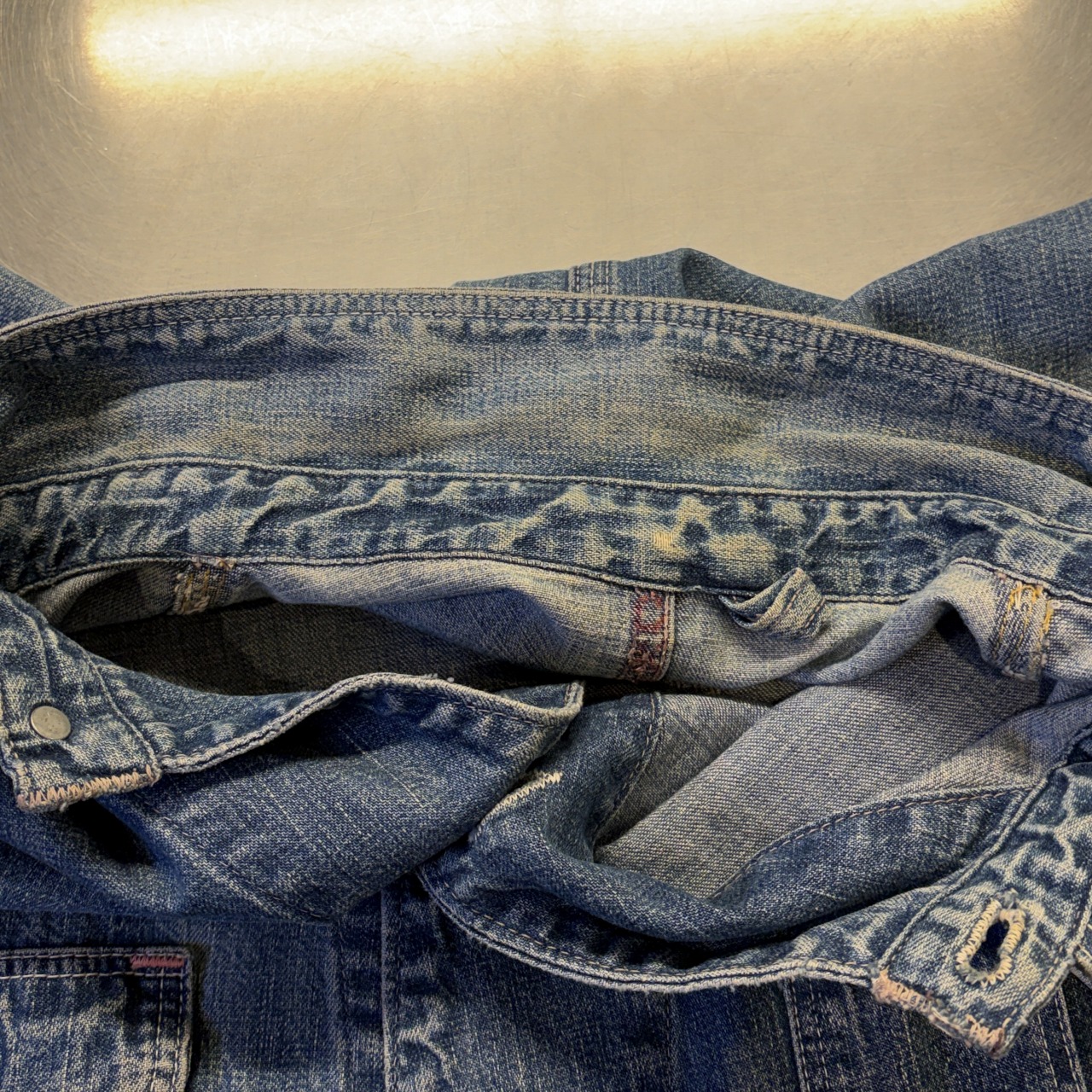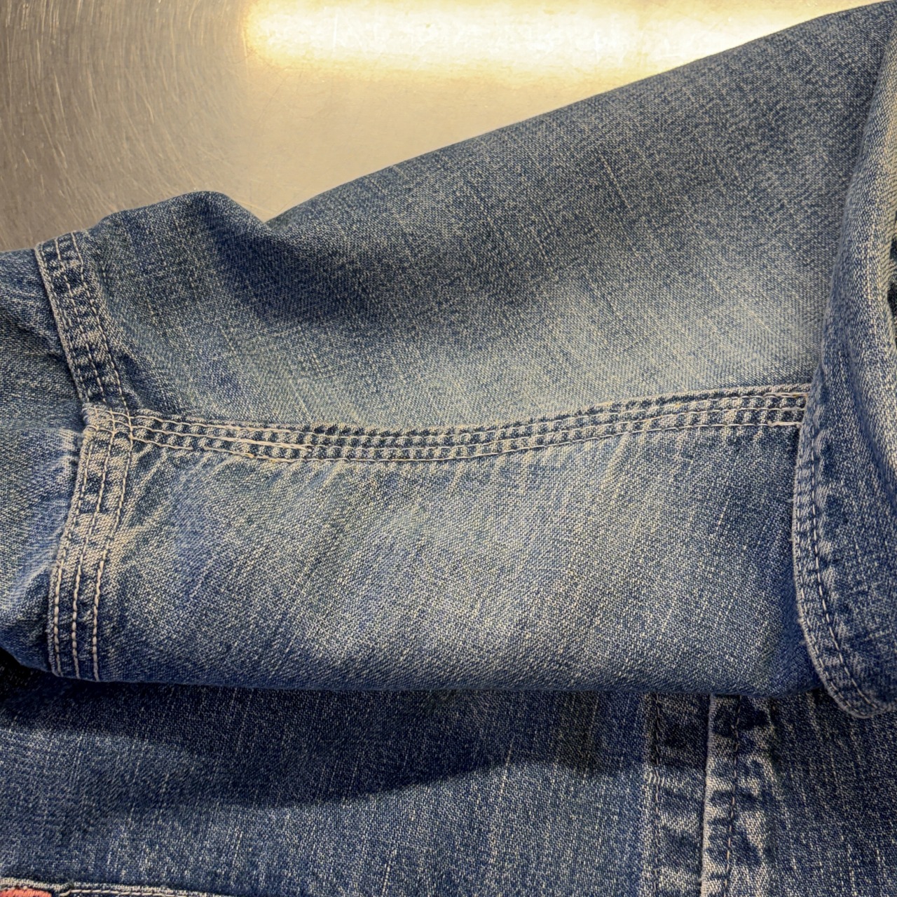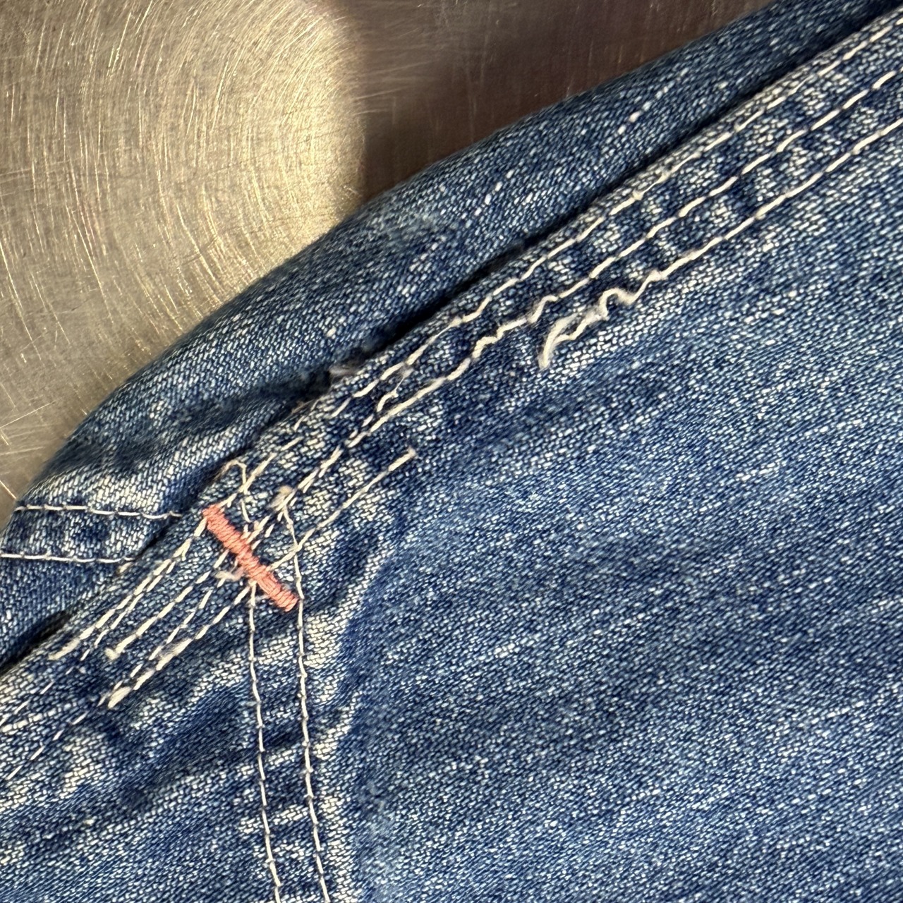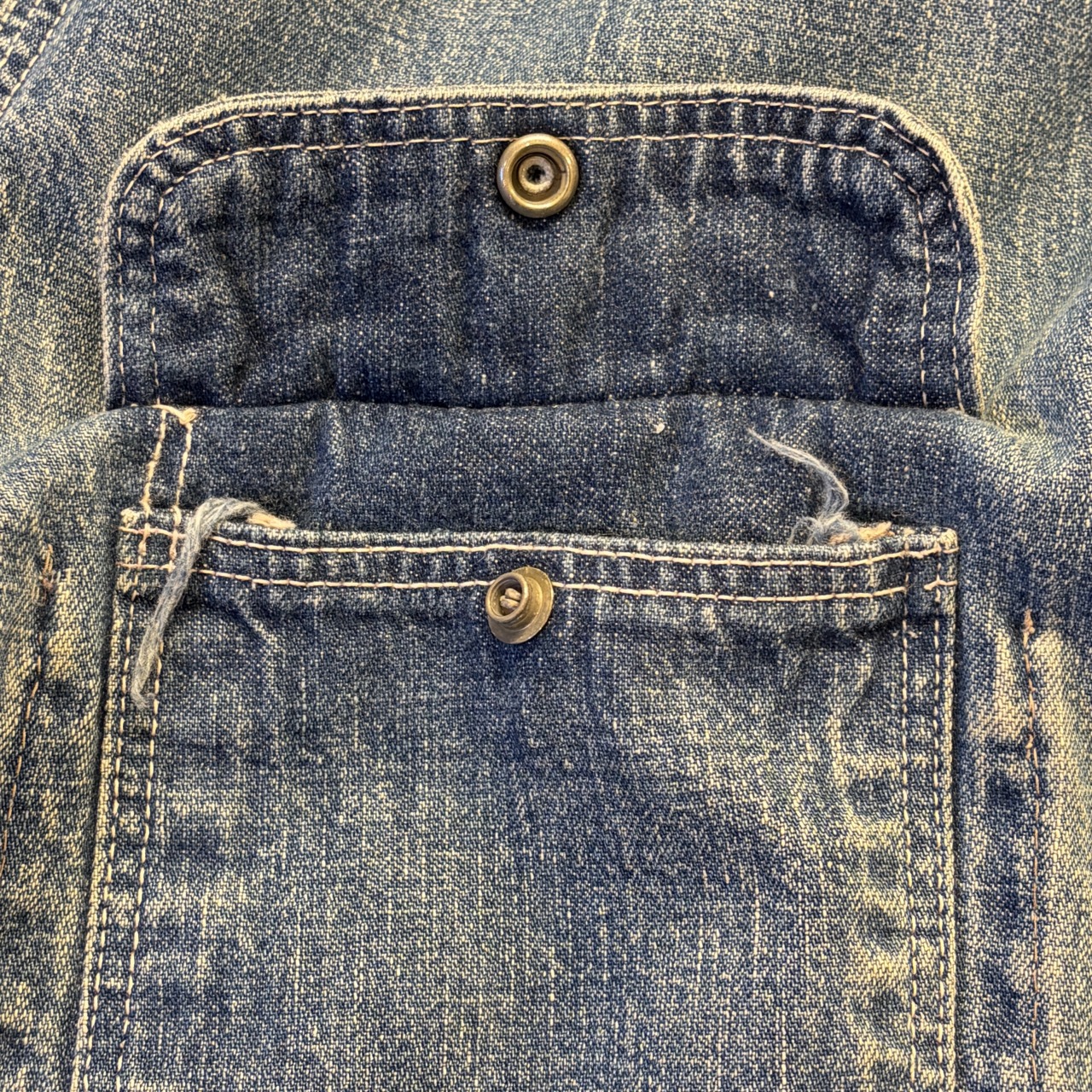 - 全体的にスレやあたり、薄汚れ、袖などのステッチ抜けがあり着用感ございます。