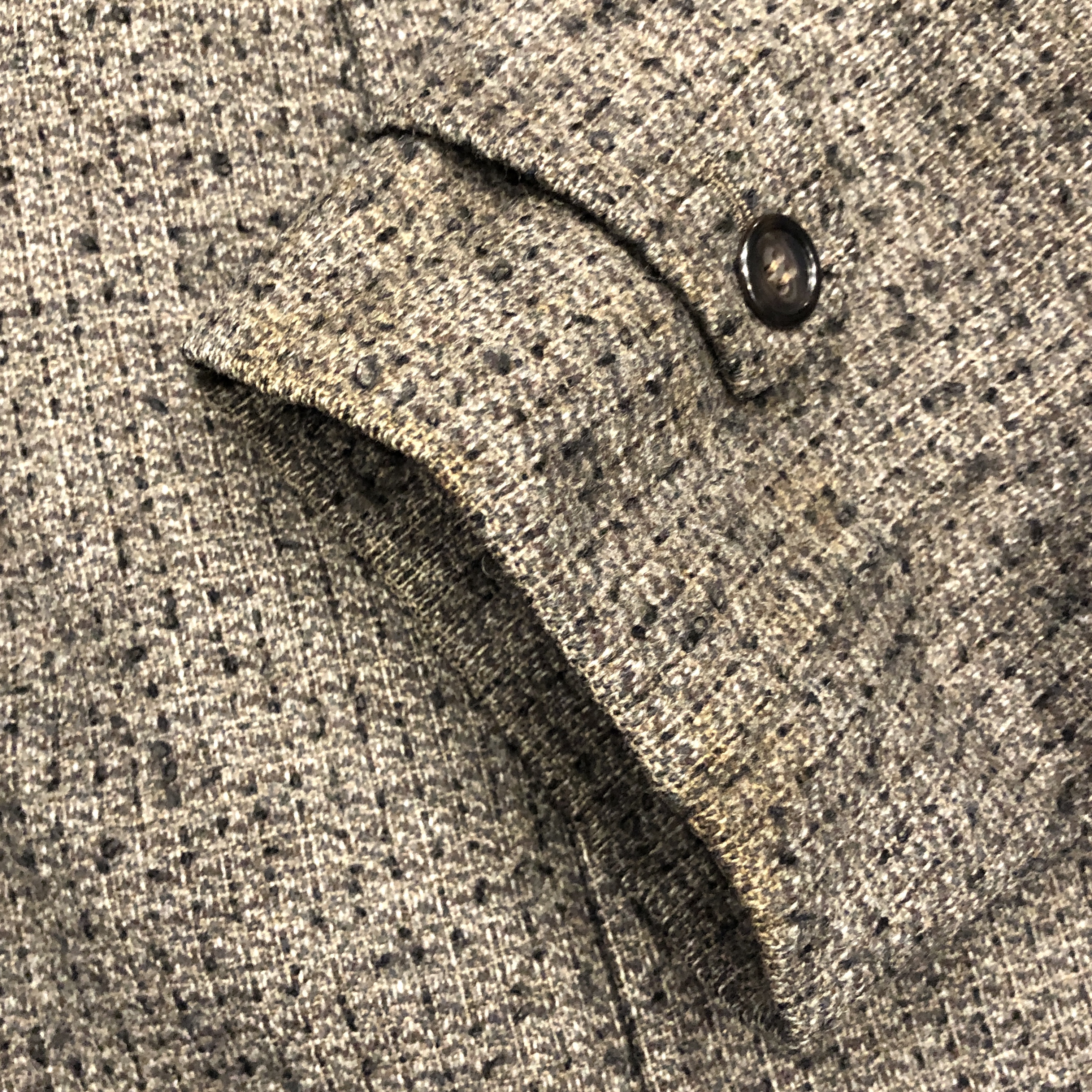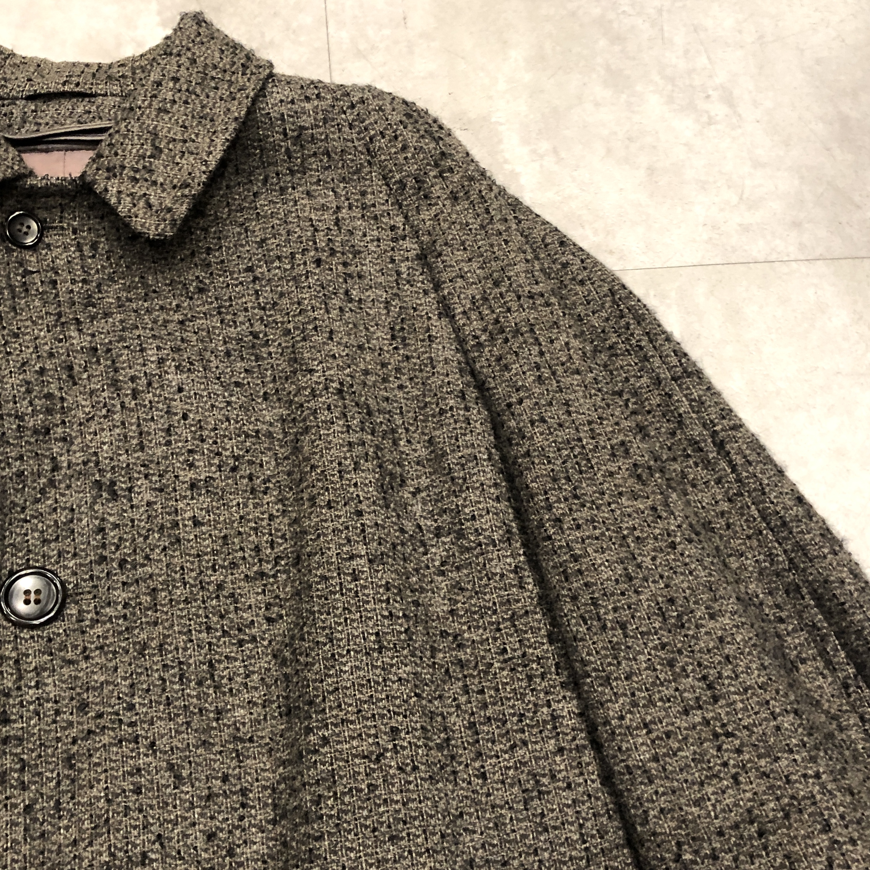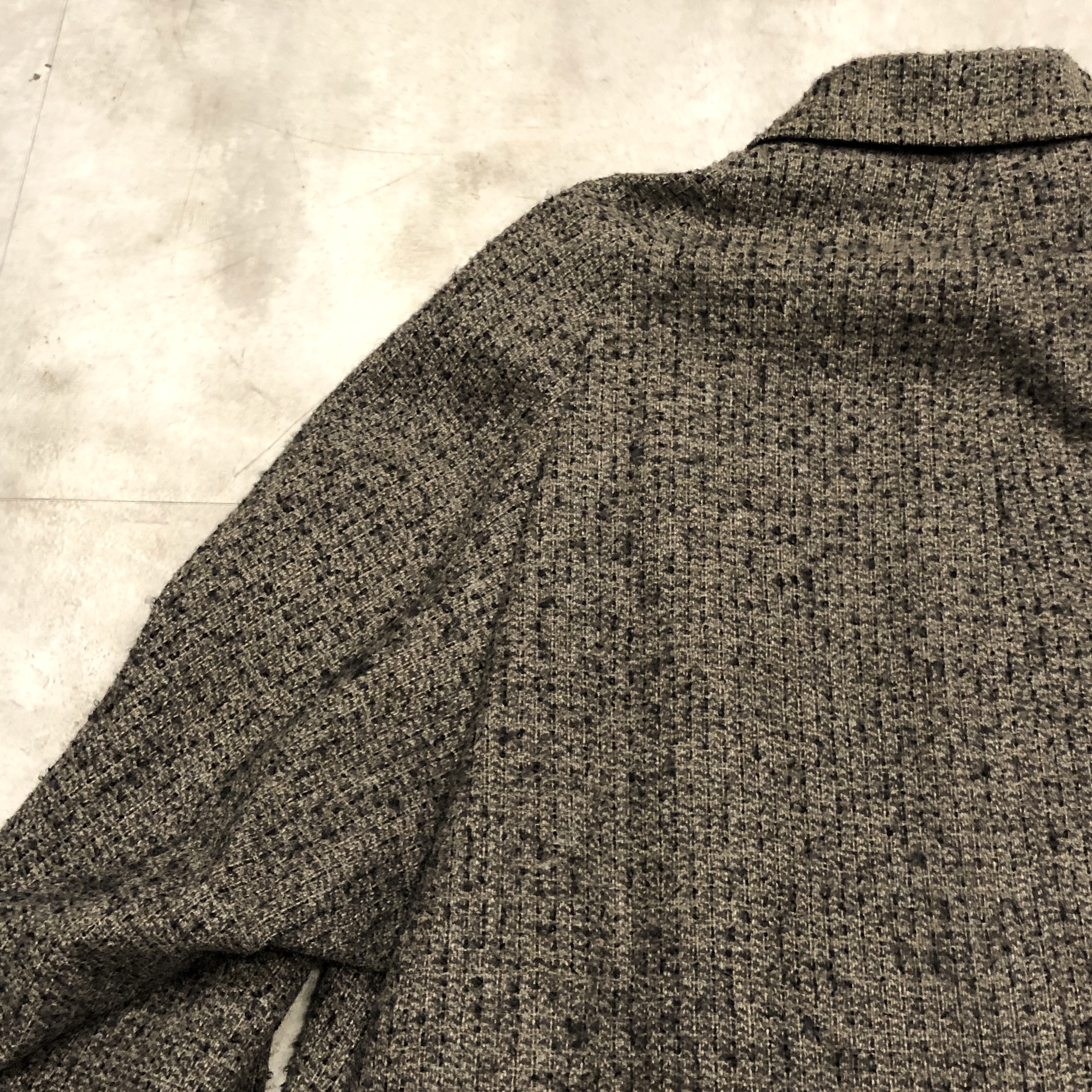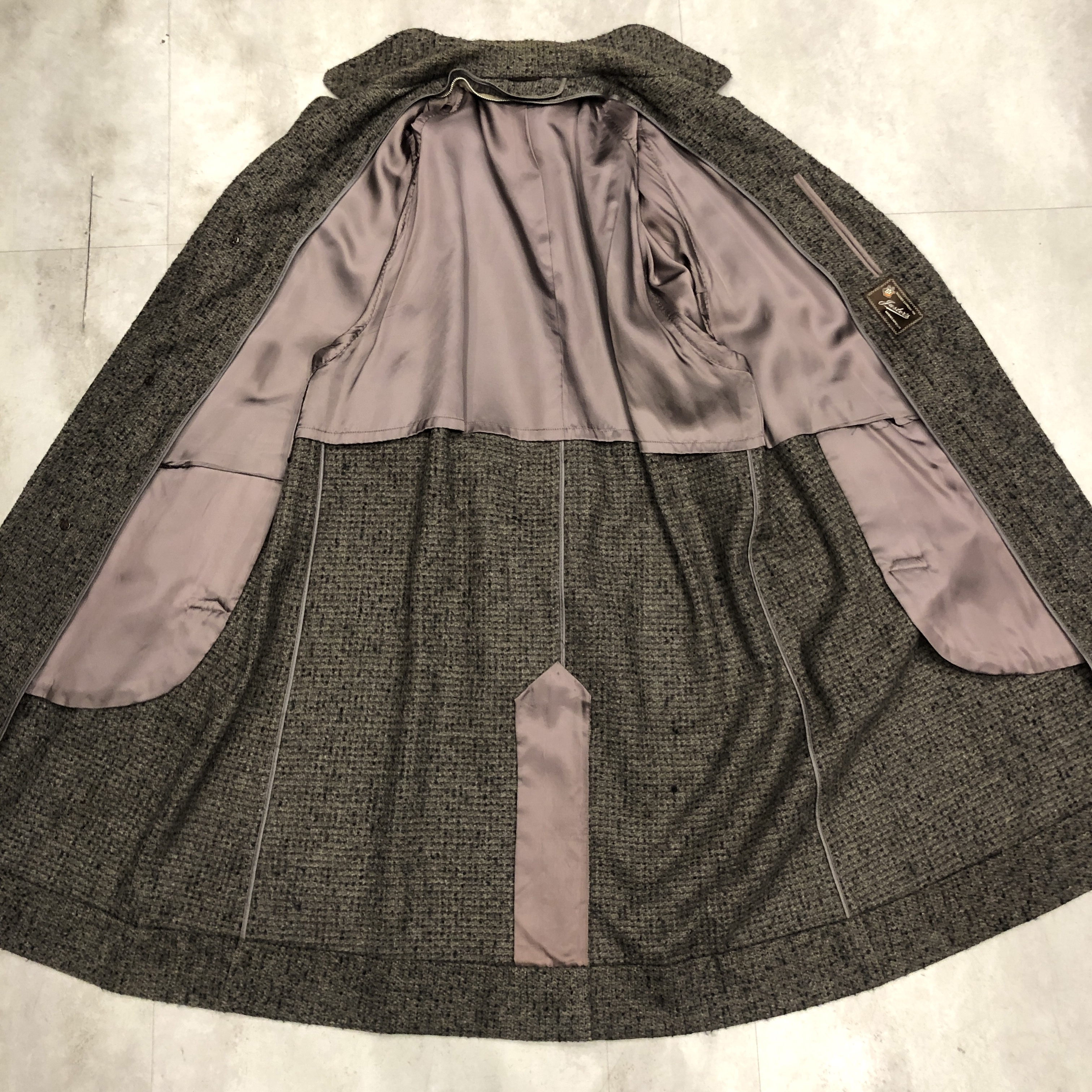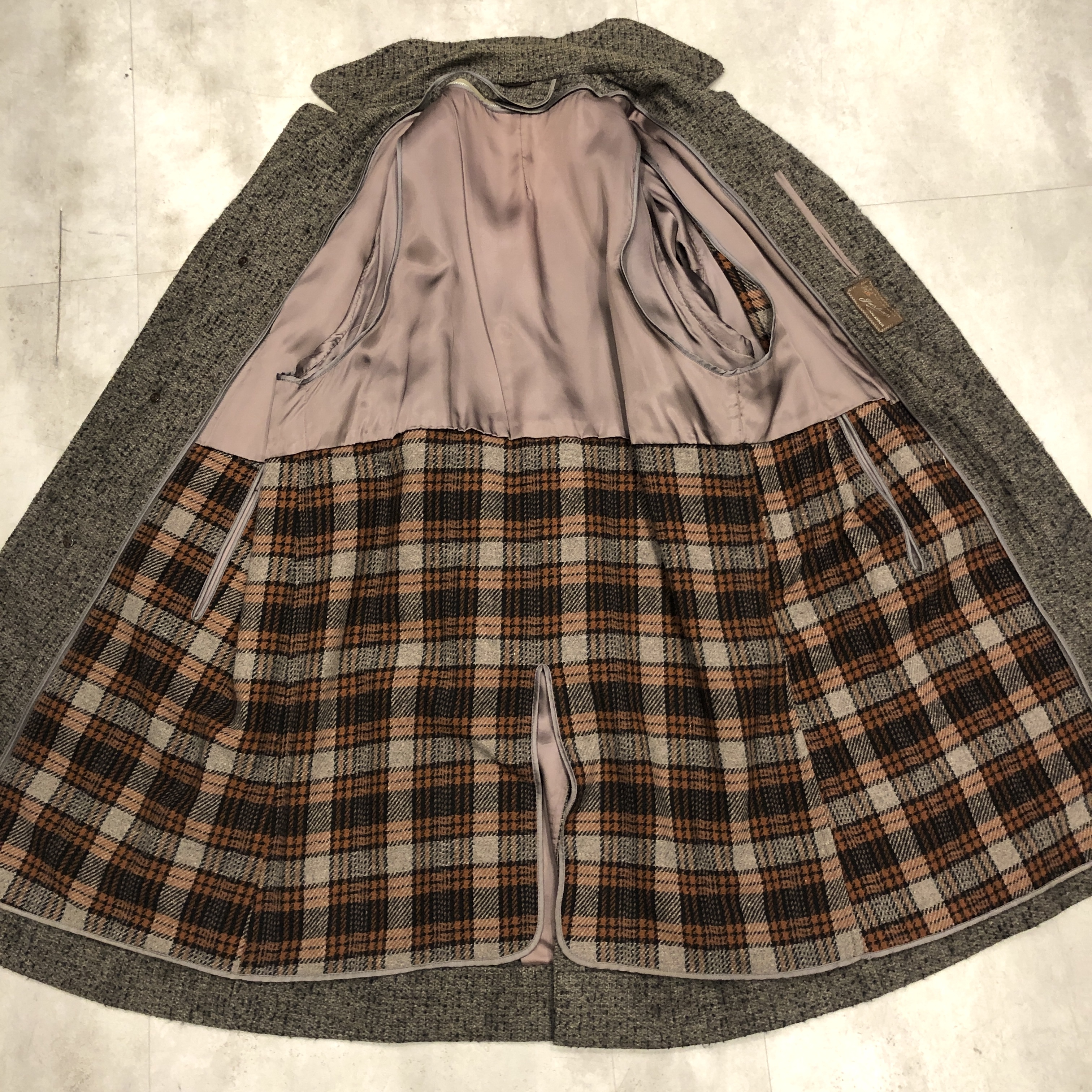 - アメリカはミネアポリスの老舗高級衣料店 Juster’s が別注したウールコートが入荷しました。まず目を奪われるのは、ヴィンテージ特有の奥行きあるブークレ調ヘリンボーンのような独特の表情。温かみのあるグレー×ブラックの混色で、光の加減によって陰影が変わるとても良い生地です。内側にはアメリカらしい遊び心を感じる取り外し可能なチェック柄ライナー(ジッパーは年代の古いTALON)。この仕様が残っている個体は本当に珍しいです。ライナーを外すと、上品なグレイッシュピンクの総裏が現れ、コート単体としてもぐっと洒落た雰囲気を纏います。ショルダーはラグラン寄りのゆとりある袖付けで、着る人の体型を選ばない美しいAライン。柔らかな冬の空気を含むようなシルエットで、クラシックと余裕が共存した、まさに“大人のヴィンテージ”。古いアメリカンコートに特有の、過剰すぎない上品なボリューム感も魅力のひとつです。シンプルな装いにさらりと羽織るだけで、ぐっと雰囲気の出る珠玉のヴィンテージコートです。