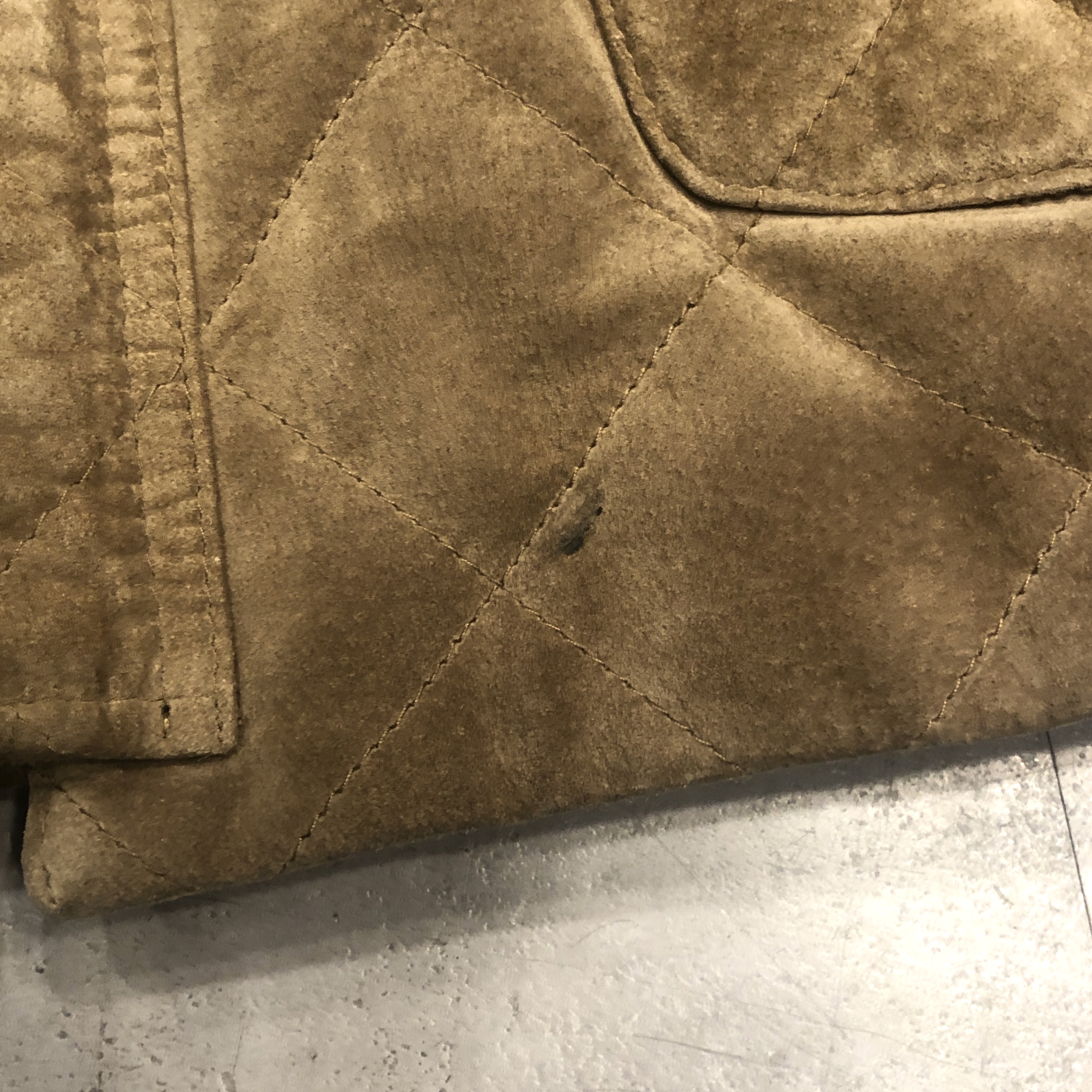 - 年代相応の着用感、スエード特有のアタリ、スレ、前面右側の裾部分の汚れ等がそれぞれ画像の様にございますが、古着慣れされている方でしたら問題なくお使いいただける範囲です。