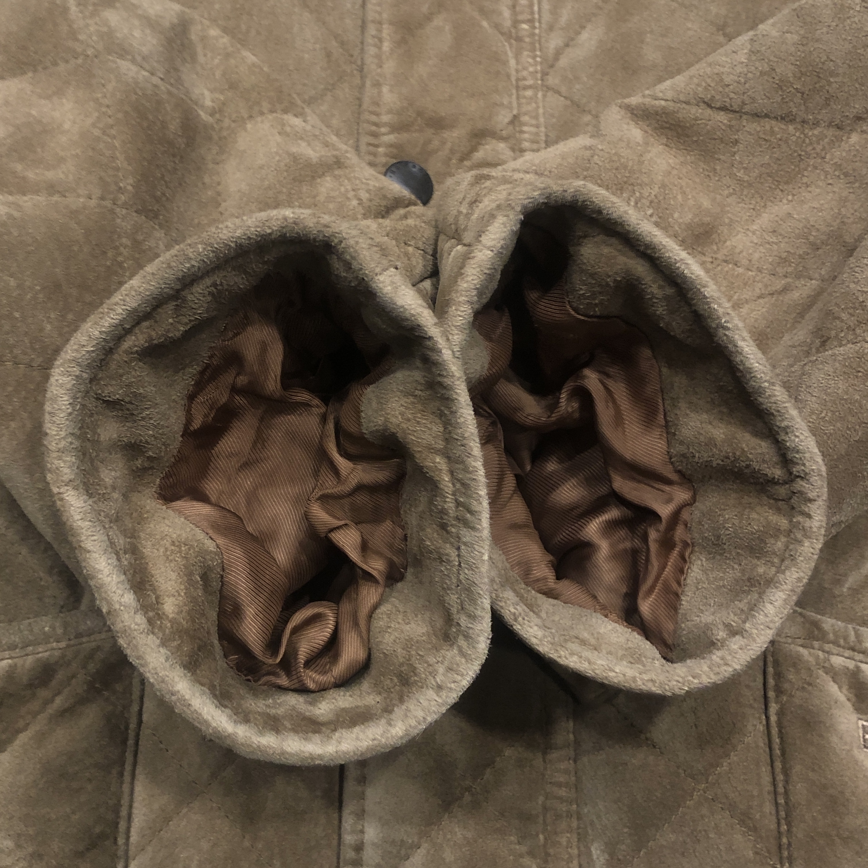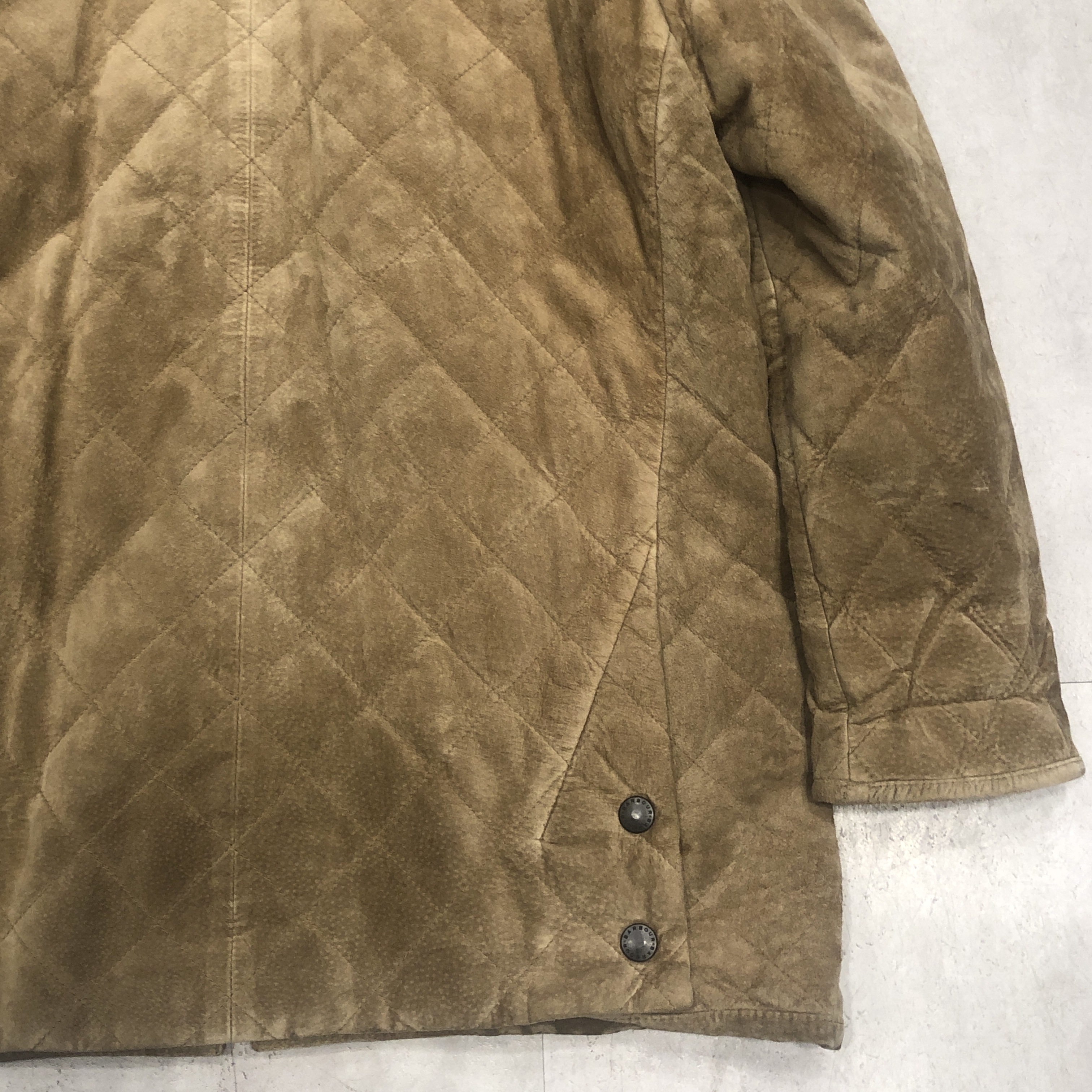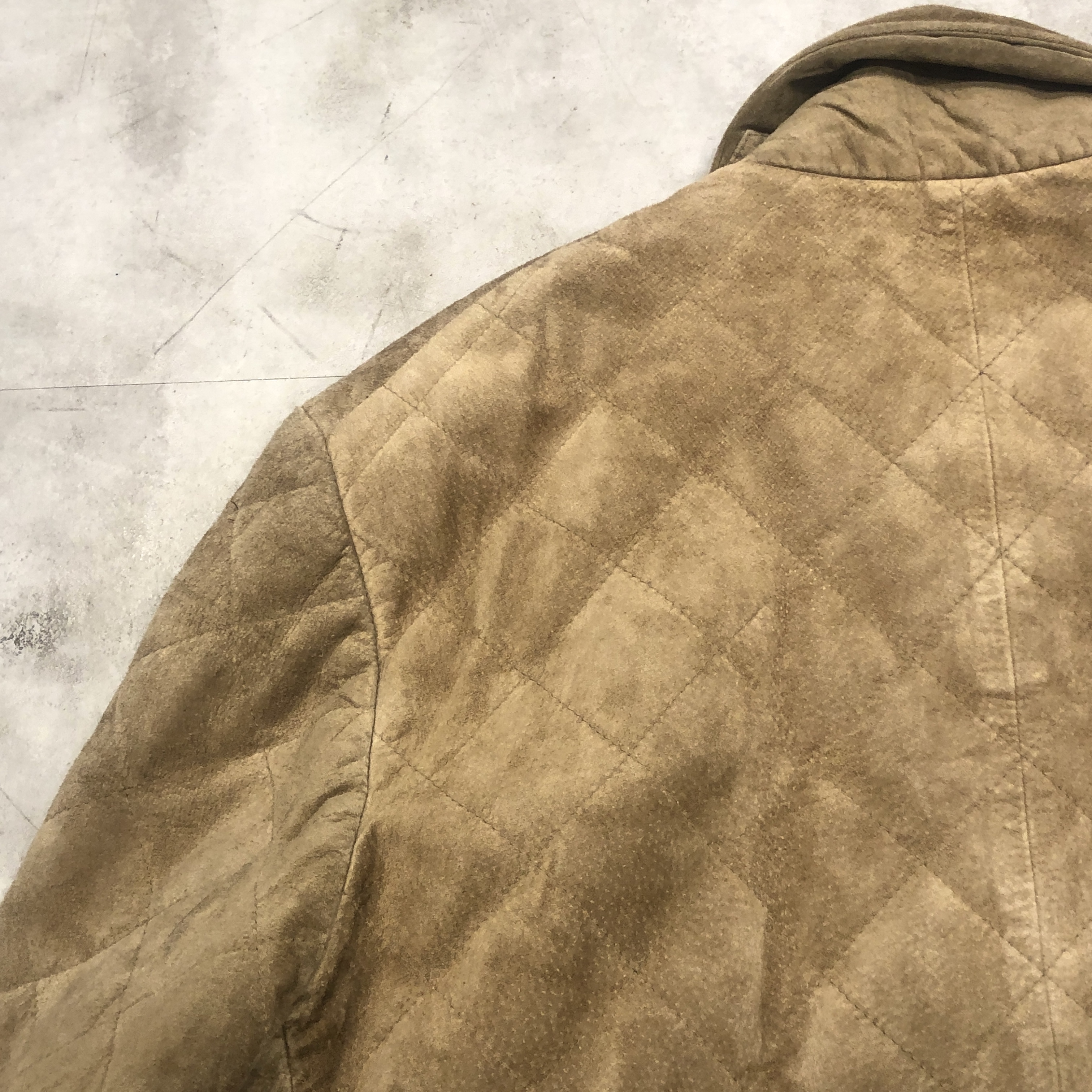 スエード特有の色ムラやアタリが、まるで古い英国カントリーの空気をまとっているかのようで、ただのキルティングでは絶対に出せない質感。
