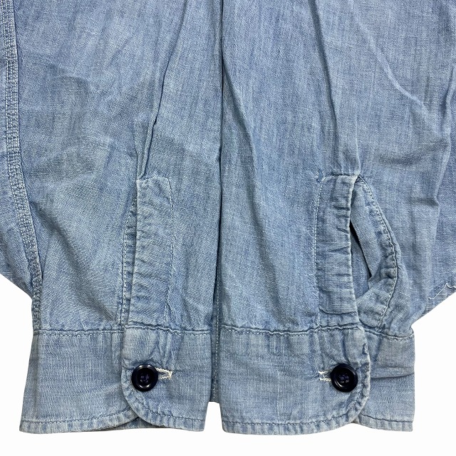 左袖の開き付近に破れがあり、ボタンホールにホツレがございます。
