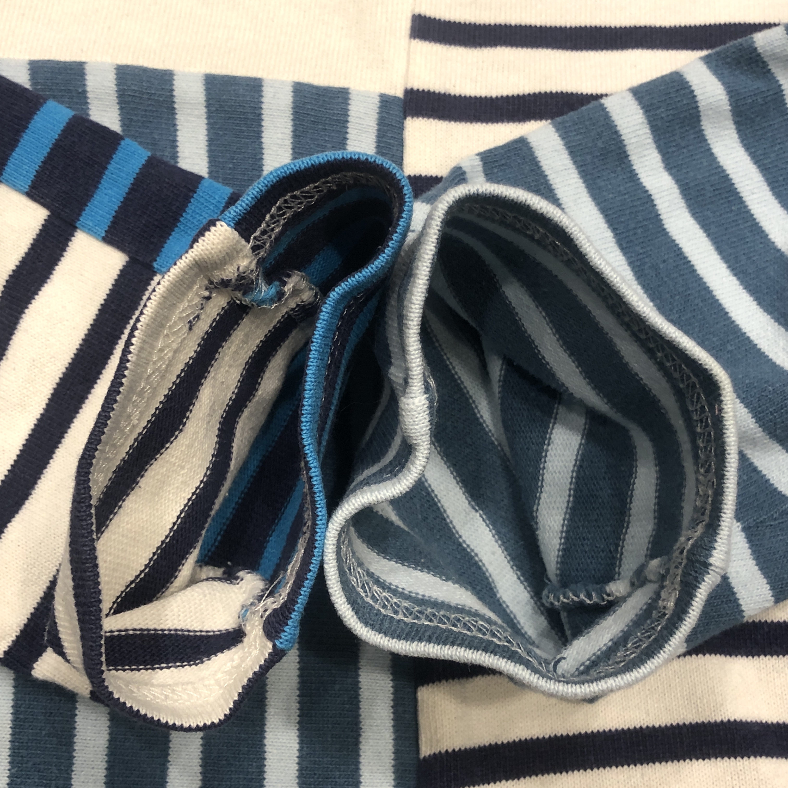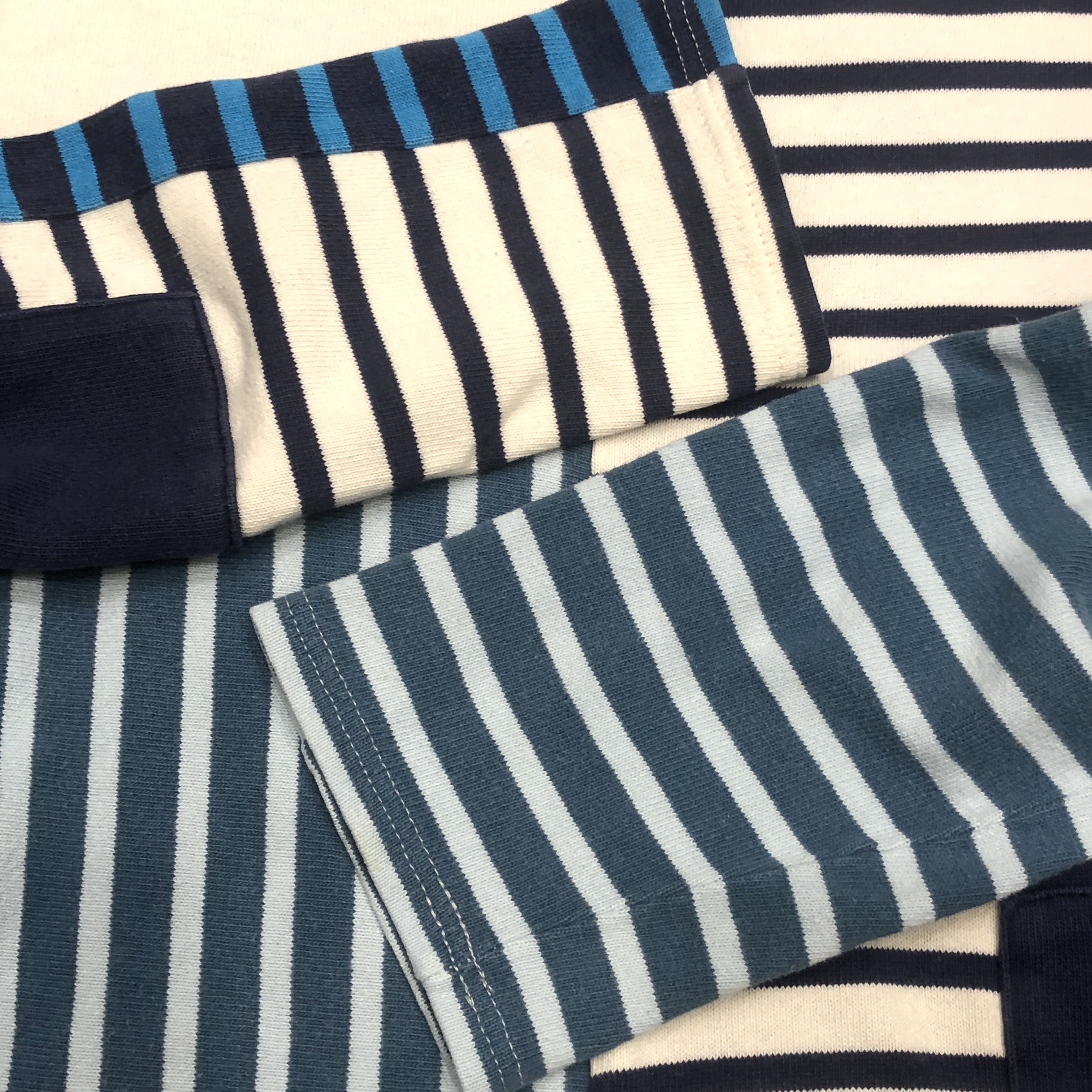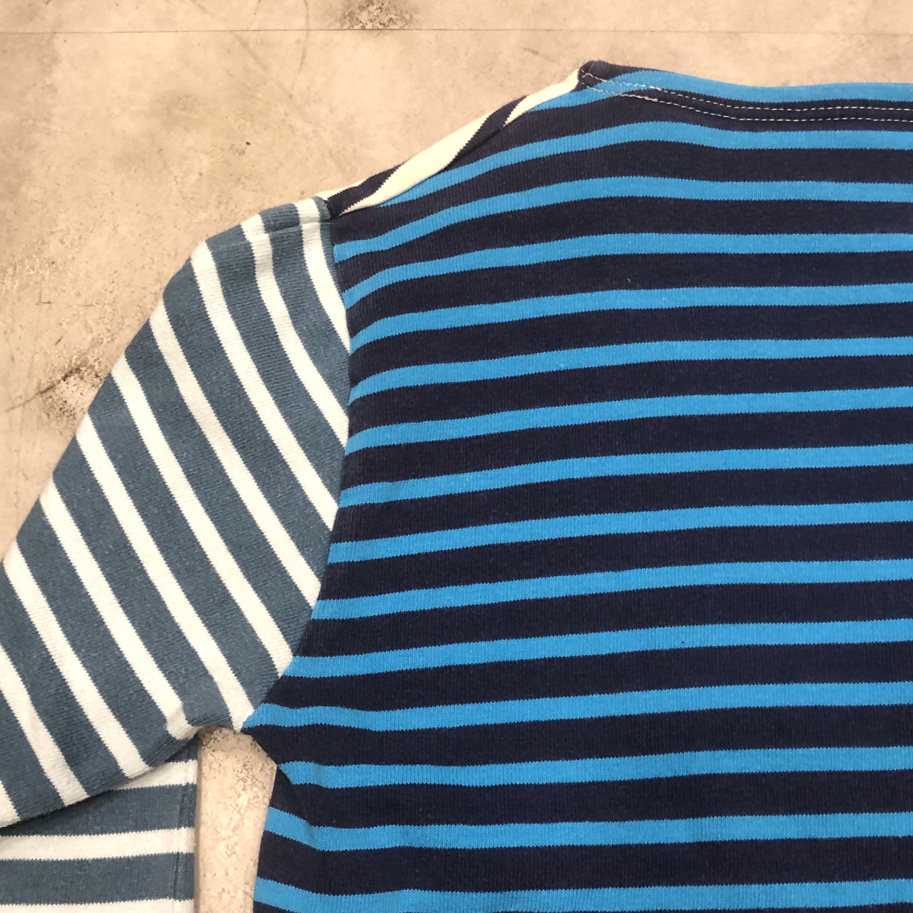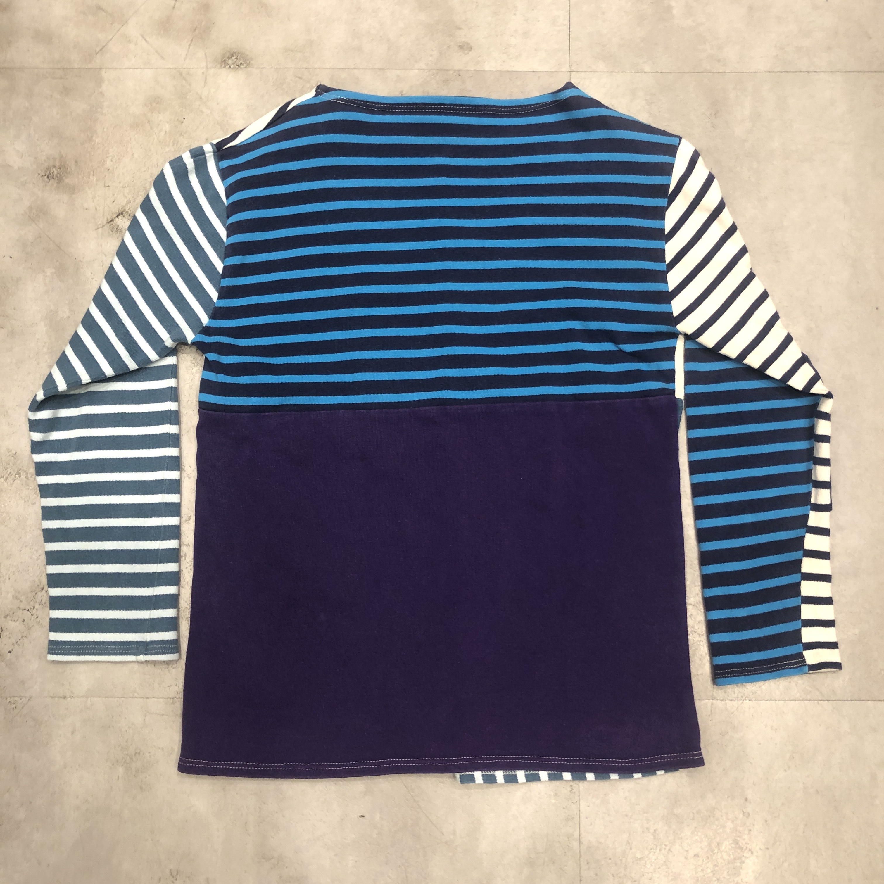そんなSAINT JAMESが2000年にミレニアムを記念して特別にリリースした限定モデルがこちら。異なるカラー、幅のボーダーと無地を組み合わせたパッチワークデザインは、クラシックなバスクシャツにモダンなエッセンスを加えた唯一無二の一着。