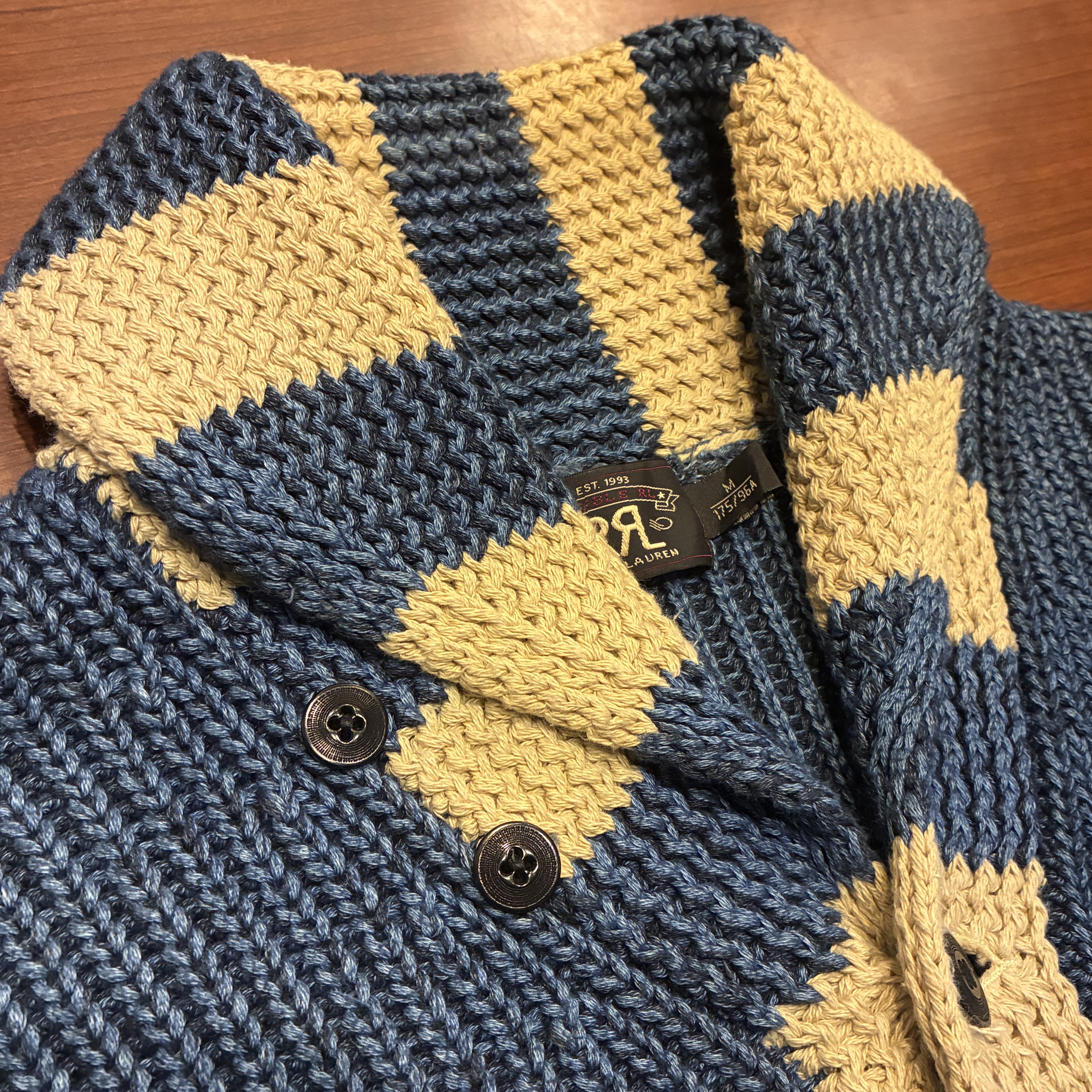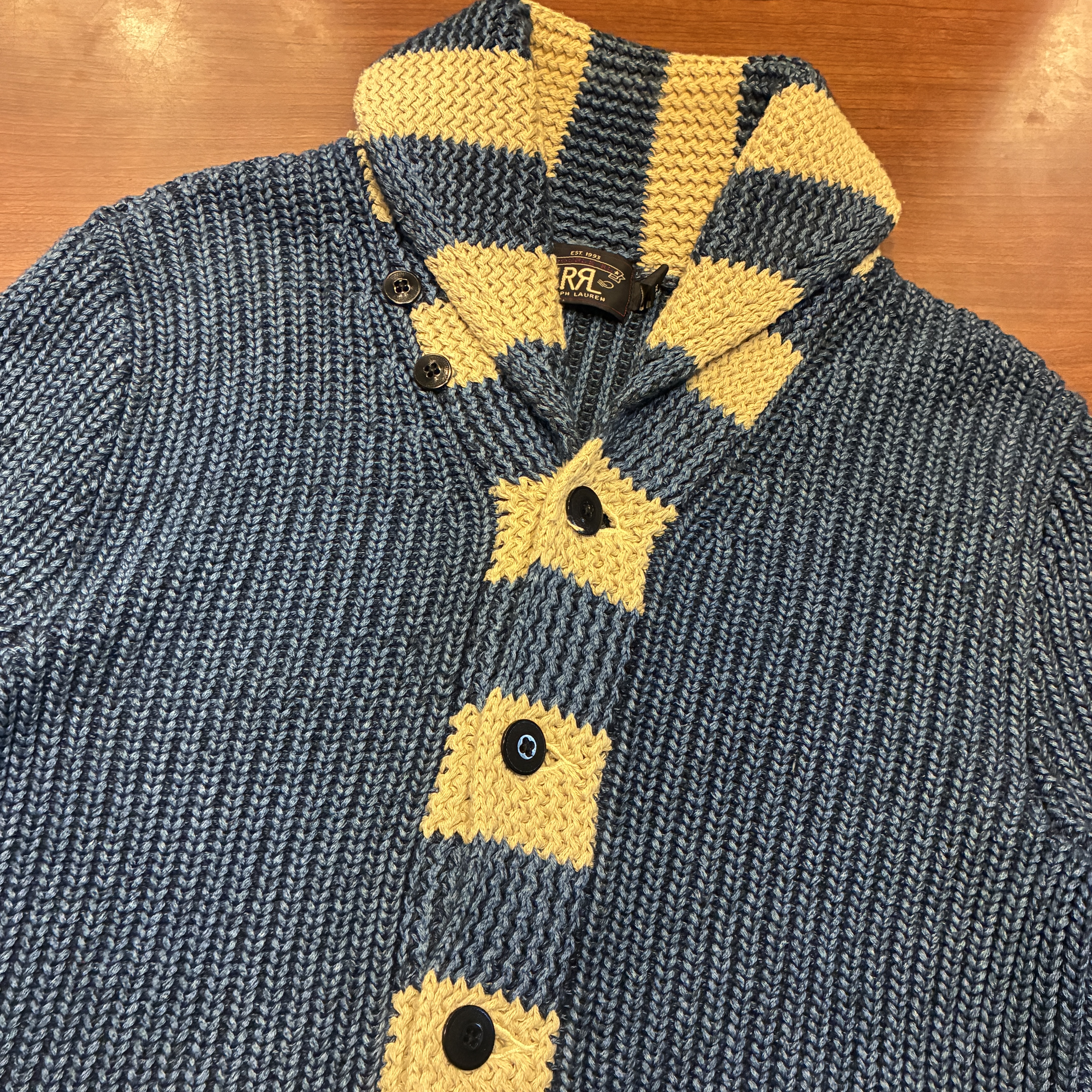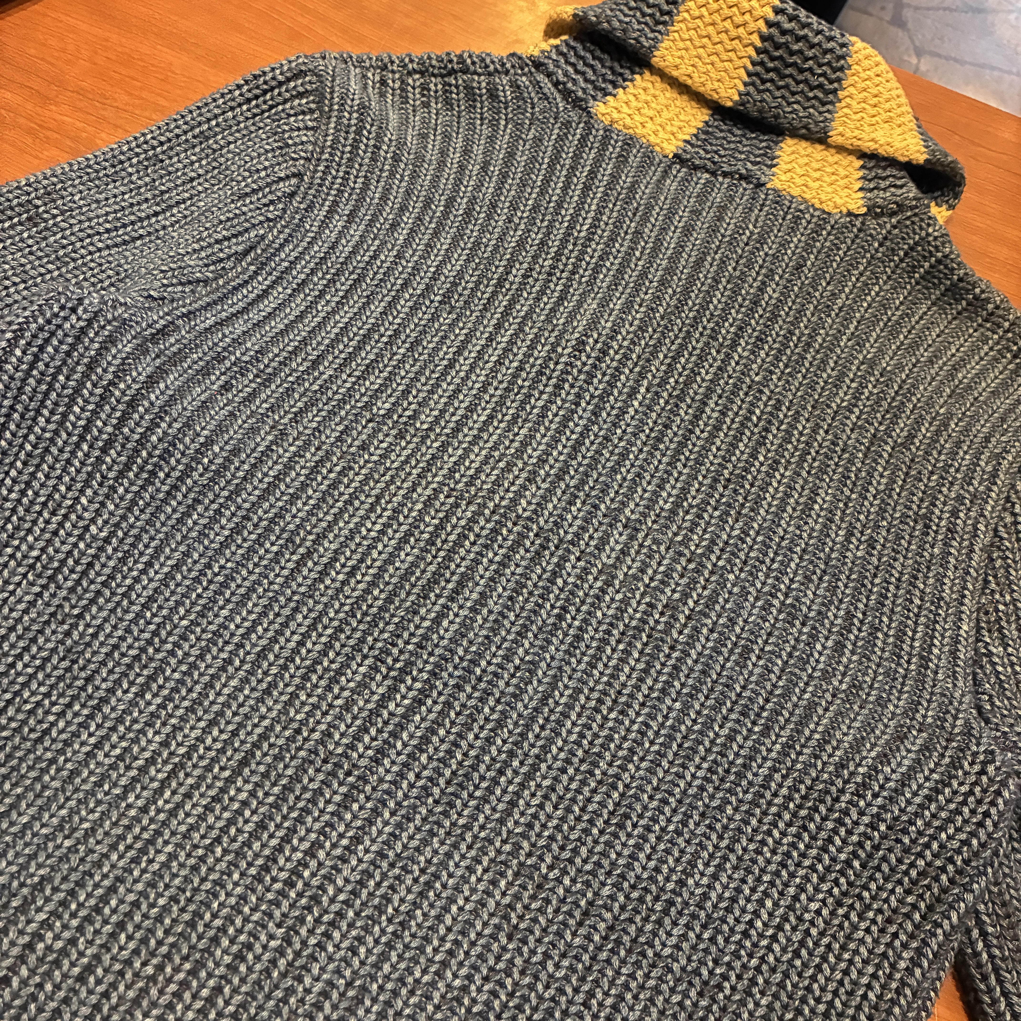 - ハンドニット製品特有の糸の飛び出しや毛羽立ち等の多少の着用感が見られますが、目立つダメージ等は無くまだまだ問題無く着用していただける状態です。