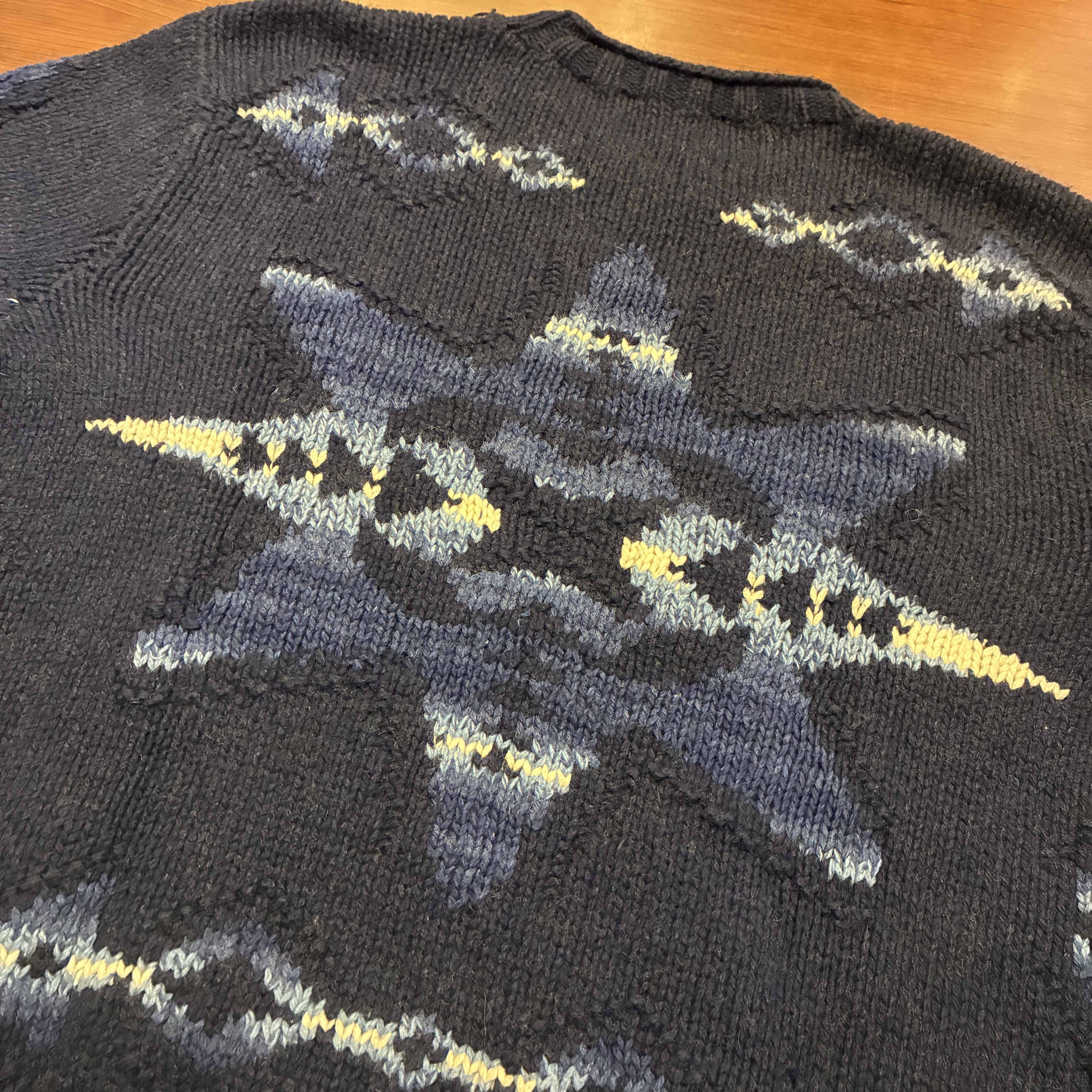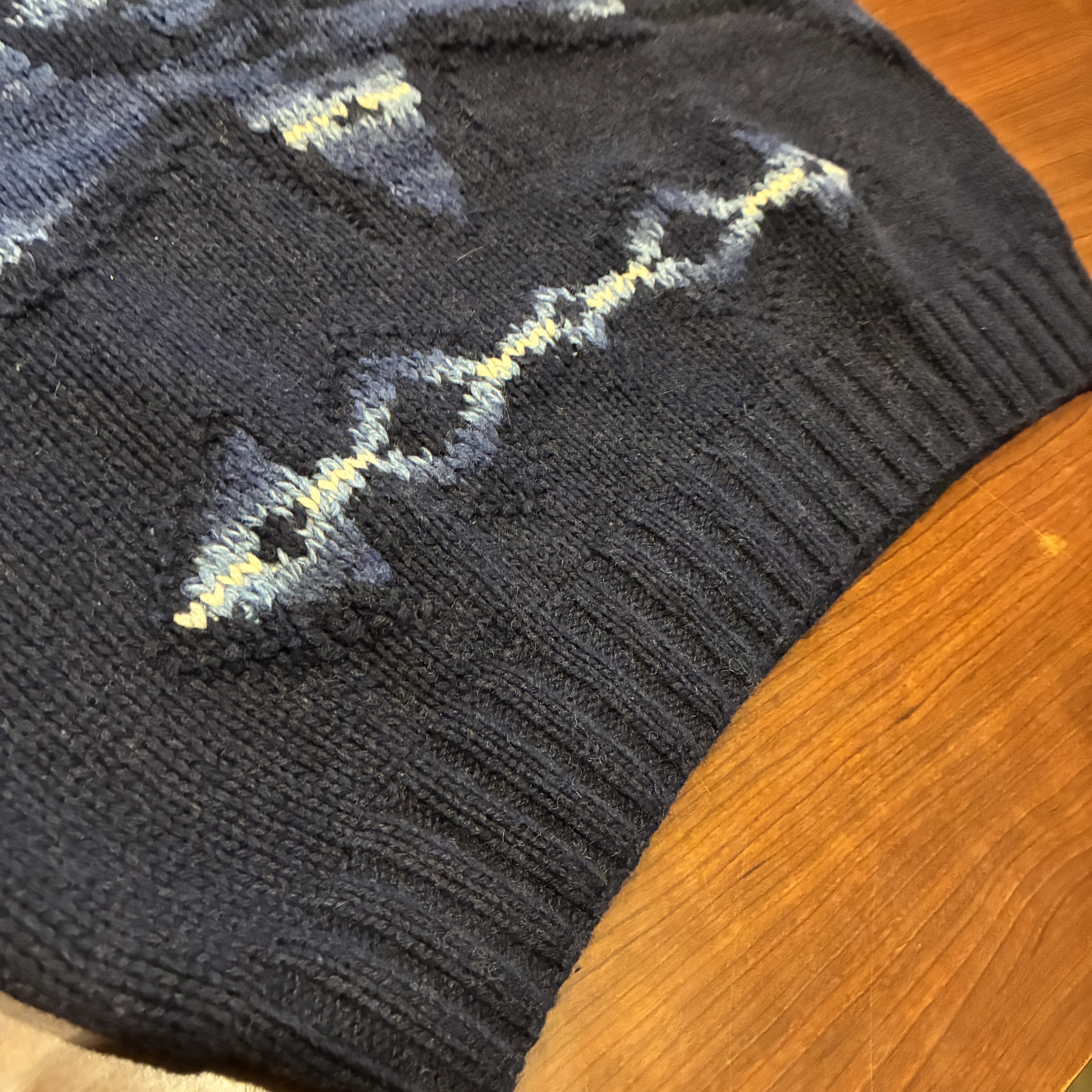 - ハンドニット製品特有の多少の毛羽立ちや糸の飛び出し、毛潰れ等の着用感がございますが、目立つ汚れやダメージは無くまだまだ問題無く着用していただける状態です。