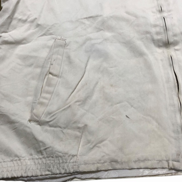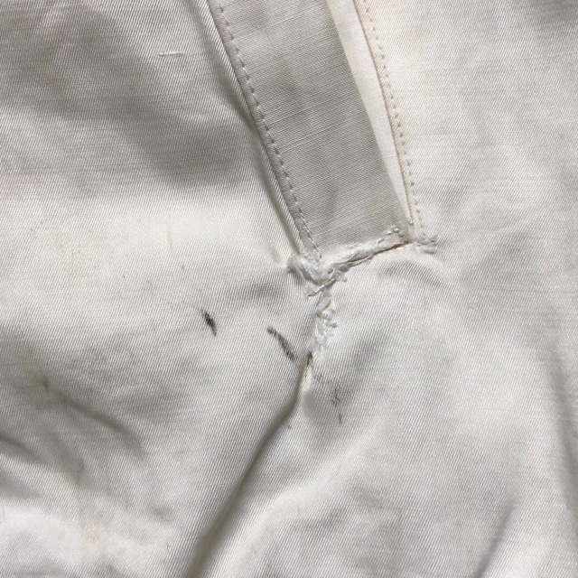 袖ボタンが欠損、袖、ポケットのふちにリペアがございます。