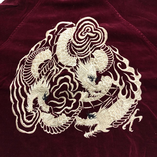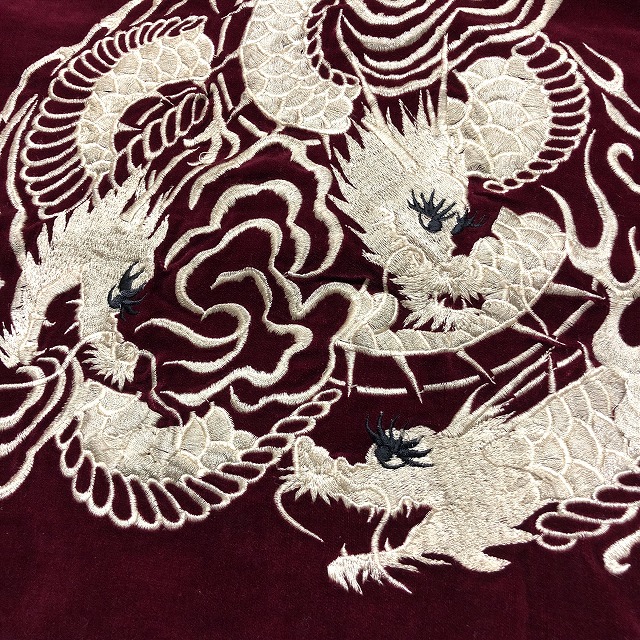 「別珍、3頭龍/鷲、黒刺繍、ジッパー不良」