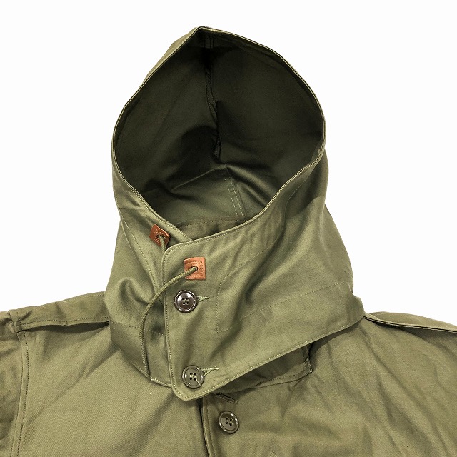 首元にはチンスト、フロントはボタンのみの仕様でフードが付属する完品です!
