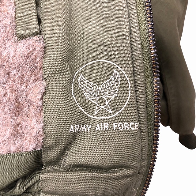 メインジッパー TALONの字留めジッパー、エアフォースマーク、アルパカライニング