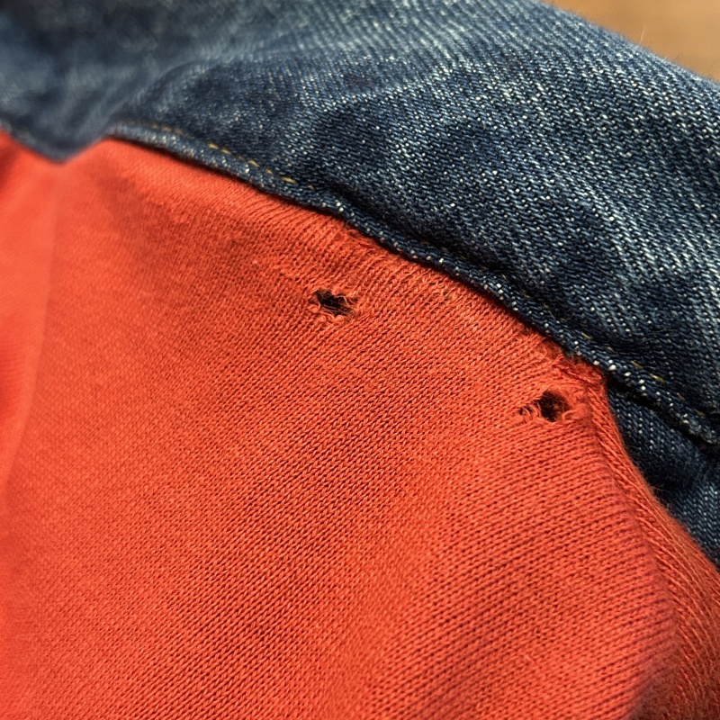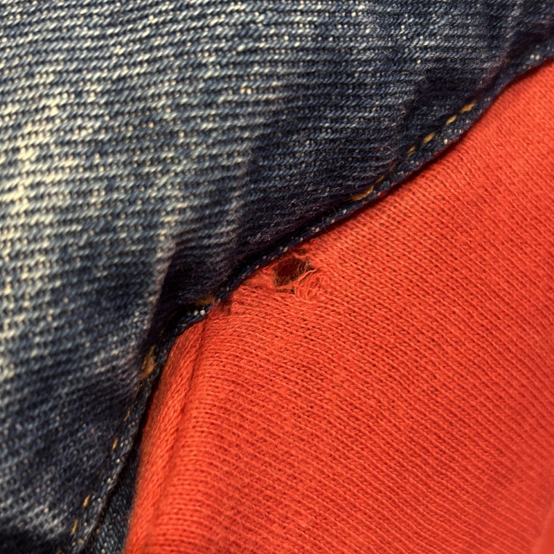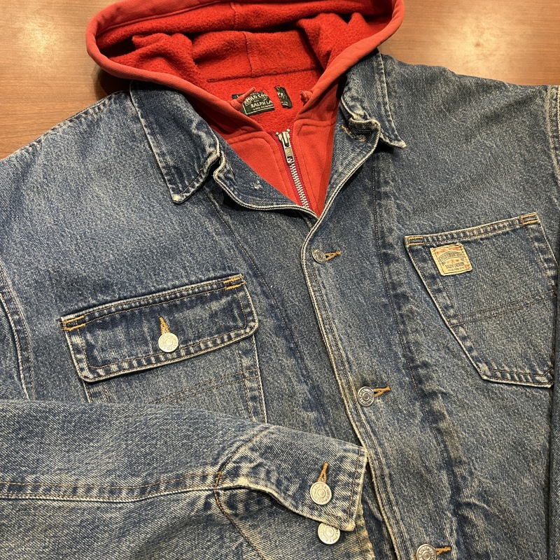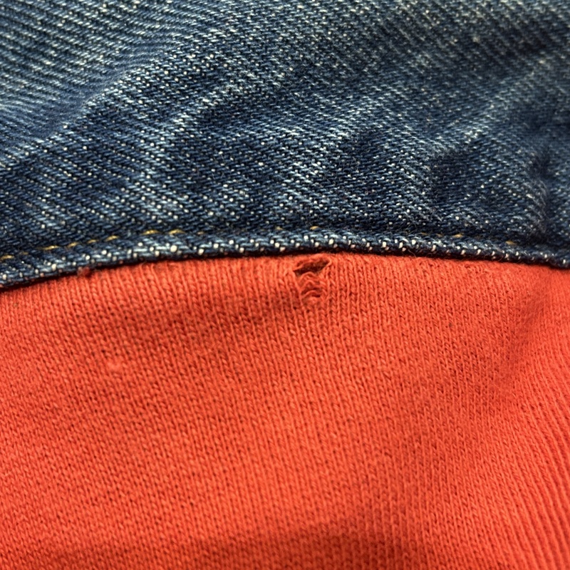 - タグがカットされております。フードの付け根部分にダメージが数か所、細かなシミがございます。袖口にダメージ、デニム特有の色落ちやアタリ等の着用感がございます。古着慣れされた方におすすめです。